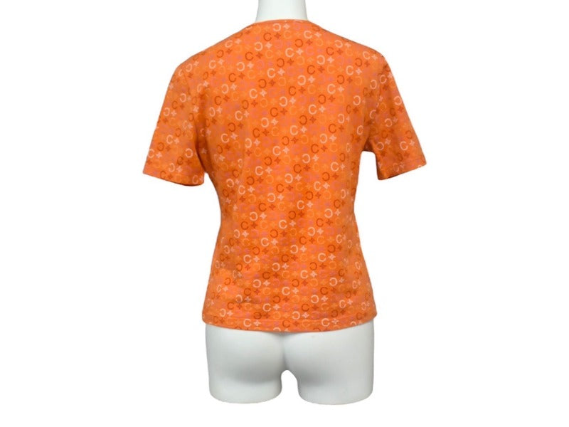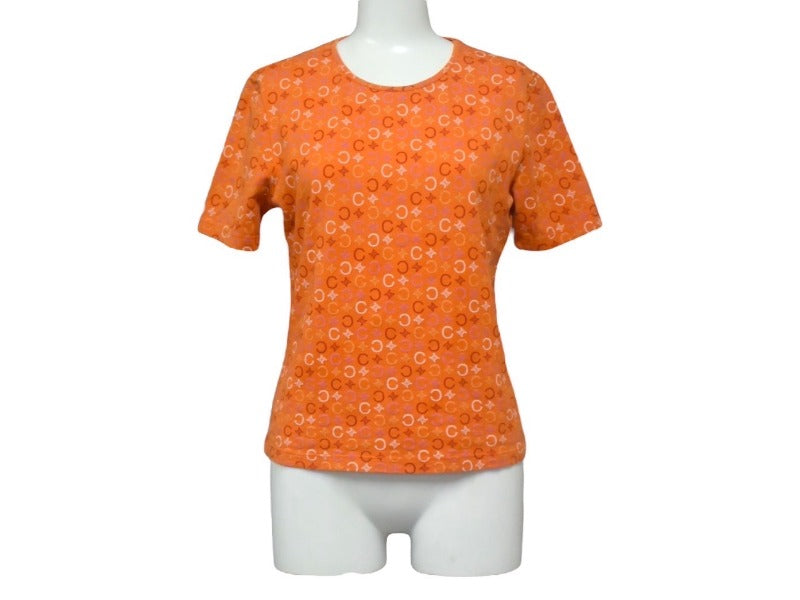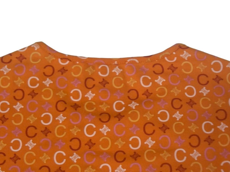 極美品 CELINE セリーヌ 半袖Tシャツ サイズS トリオンフ 総柄 プリント オレンジ コットン ポリウレタン 中古 4c067095cn