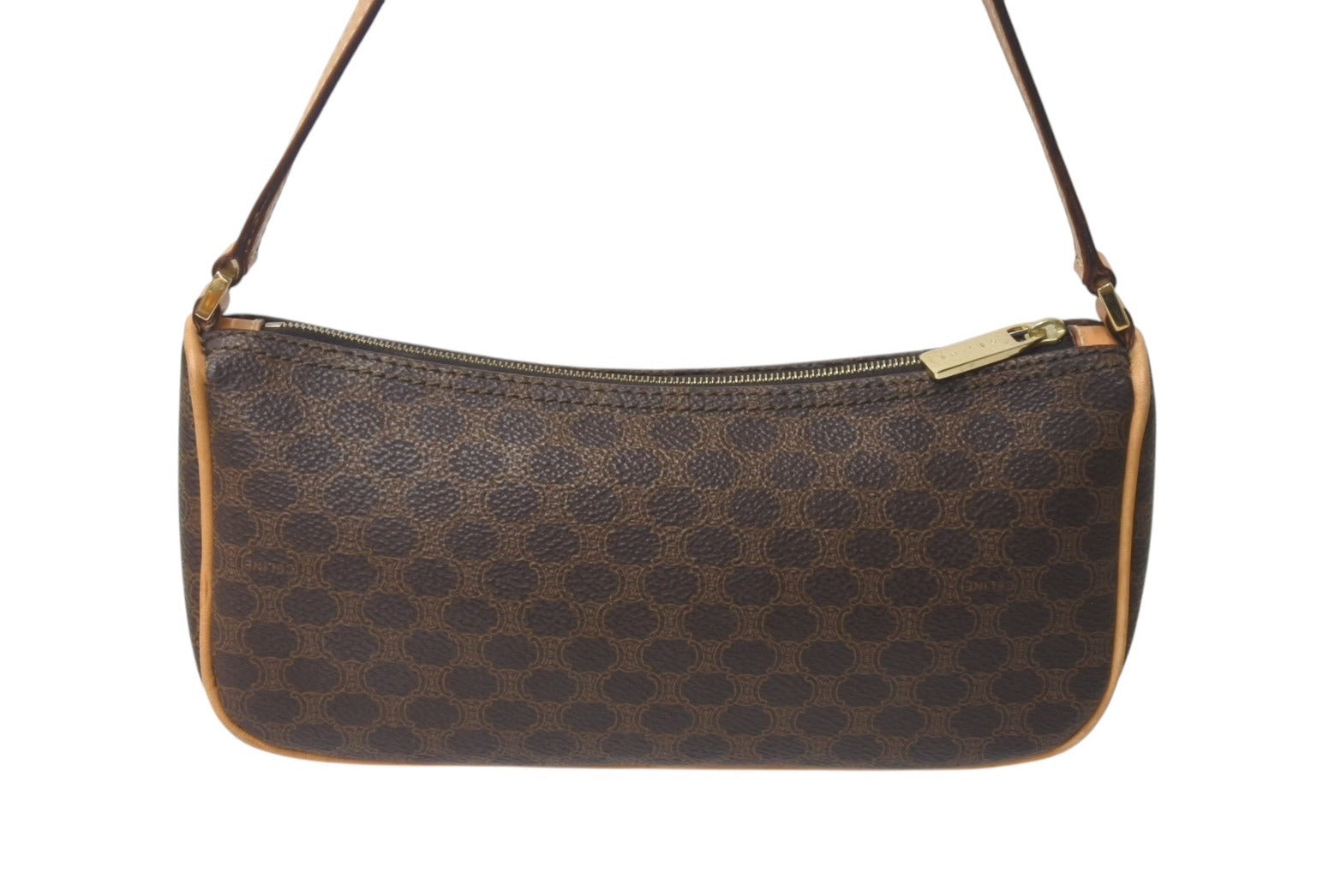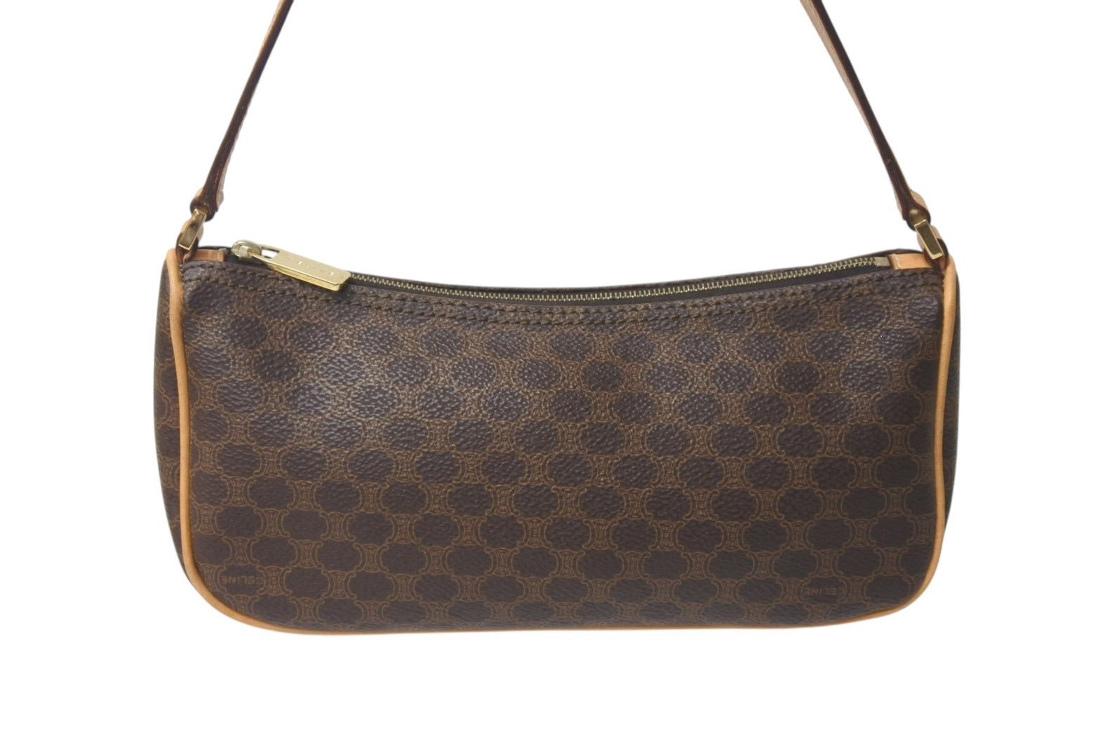 CELINE セリーヌ ワンショルダーバッグ ミニハンドバッグ アクセサリーポーチ マカダム柄 ブラウン 美品 中古 4c076636 正規品
