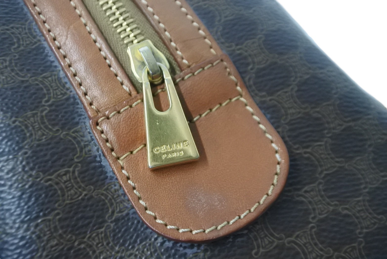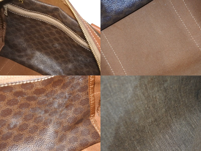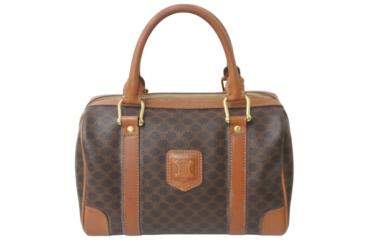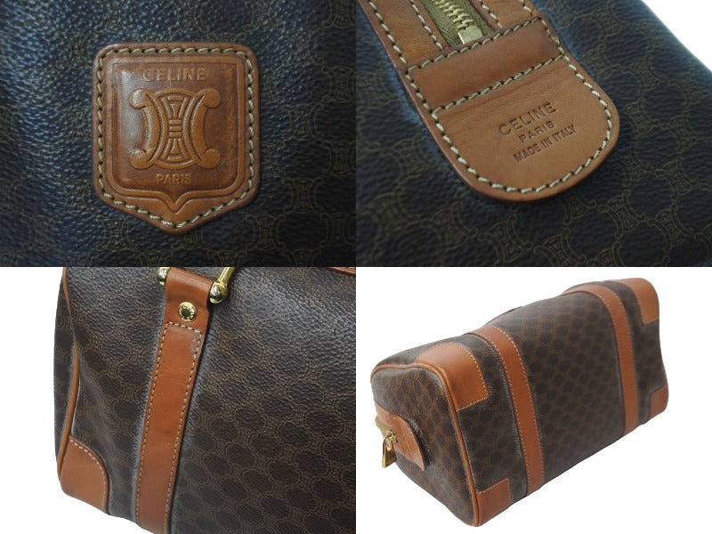CELINE セリーヌ ハンドバッグ ミニボストンバッグ マカダム柄 PVC レザー ダークブラウン ゴールド金具 良品 中古 55898