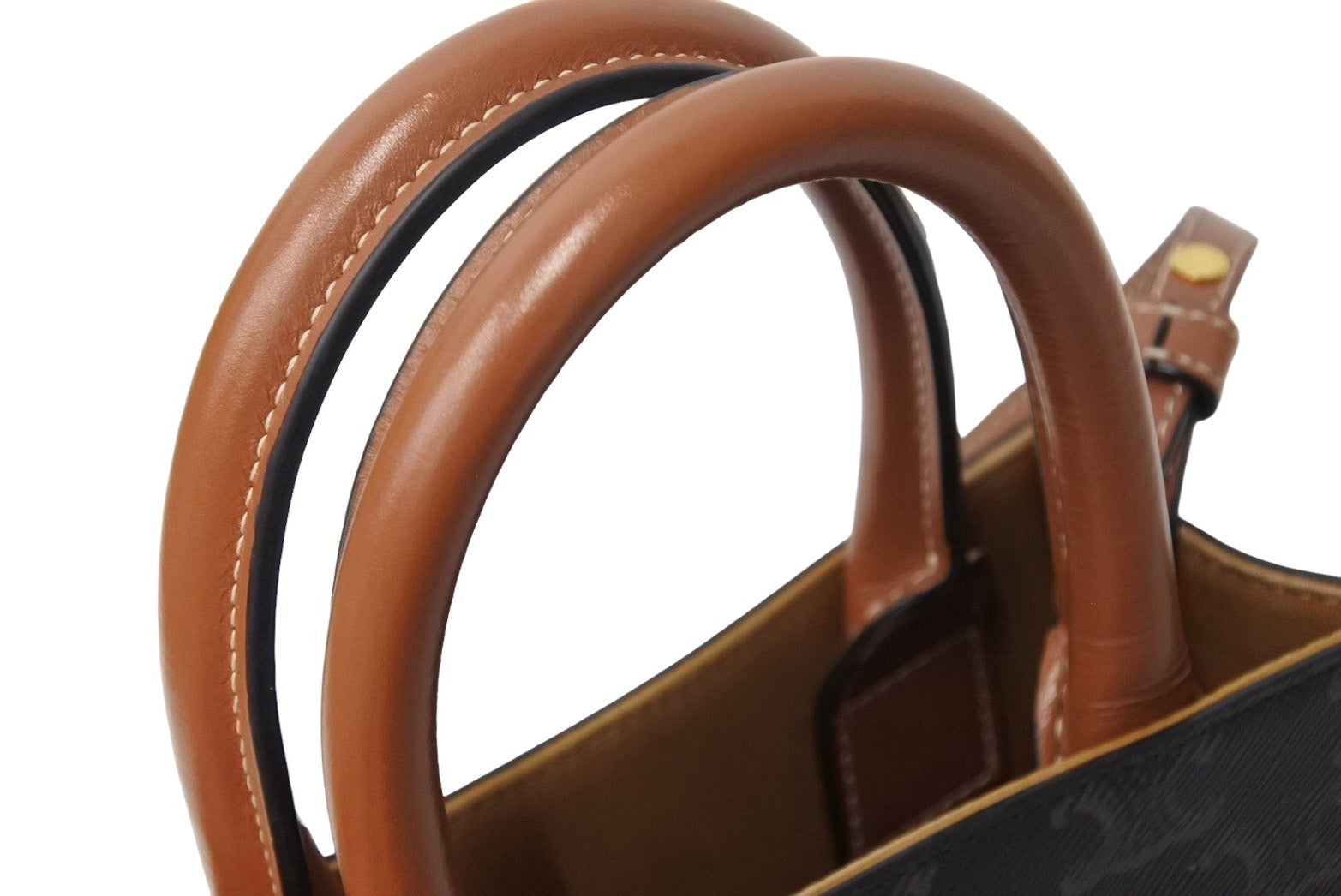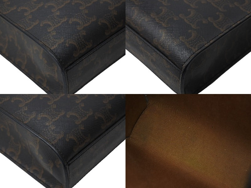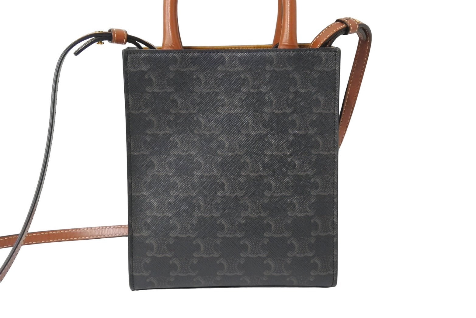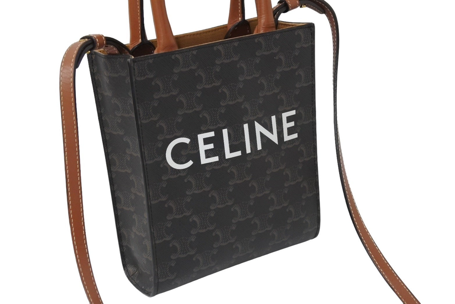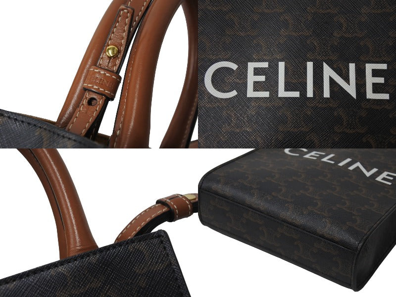 極美品 CELINE セリーヌ ハンドバッグ トリオンフ柄 194372BZK.04LU ミニバーティカルカバ キャンバス ブラウン 中古 67201