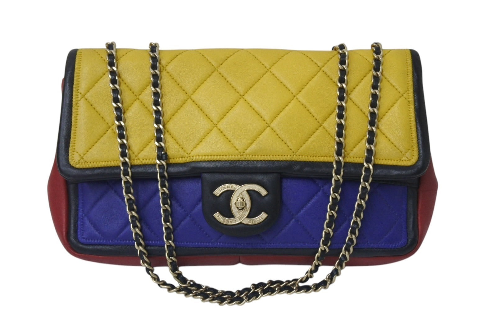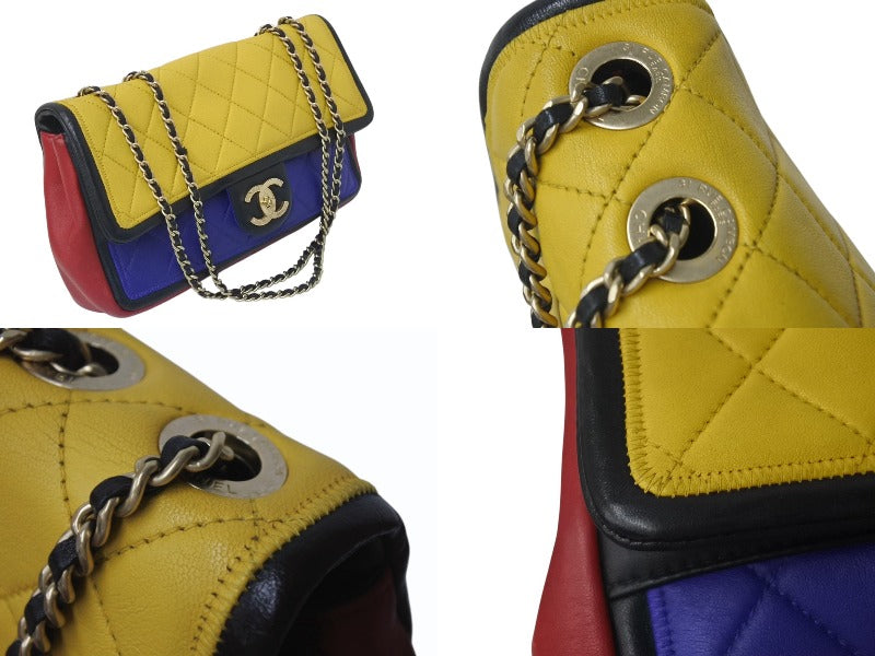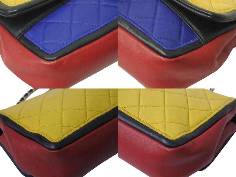 CHANEL シャネル マトラッセ チェーンショルダーバッグ ココマーク モンドリアンカラー ラムスキン 17番台 ゴールド金具 美品 中古 4b000014