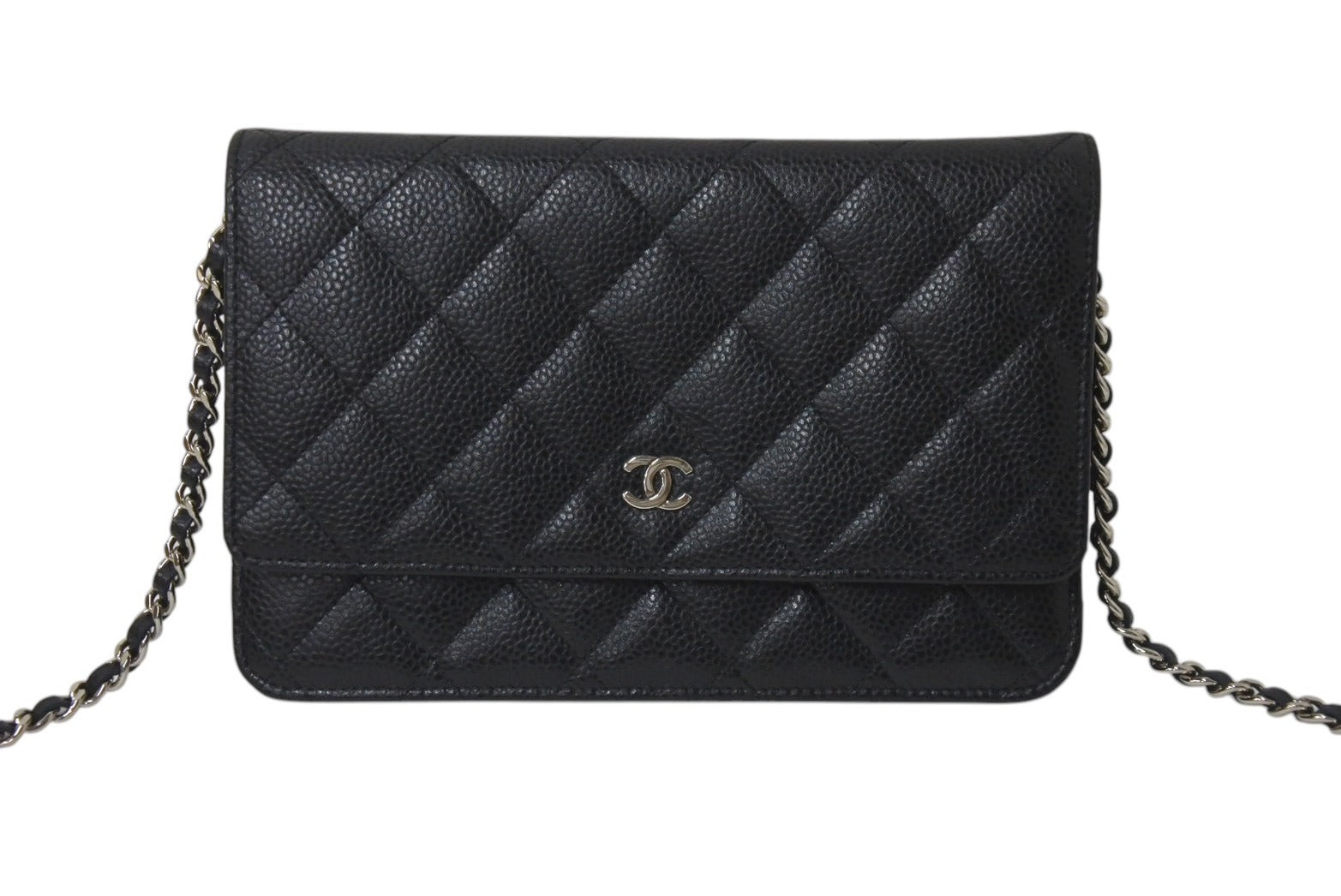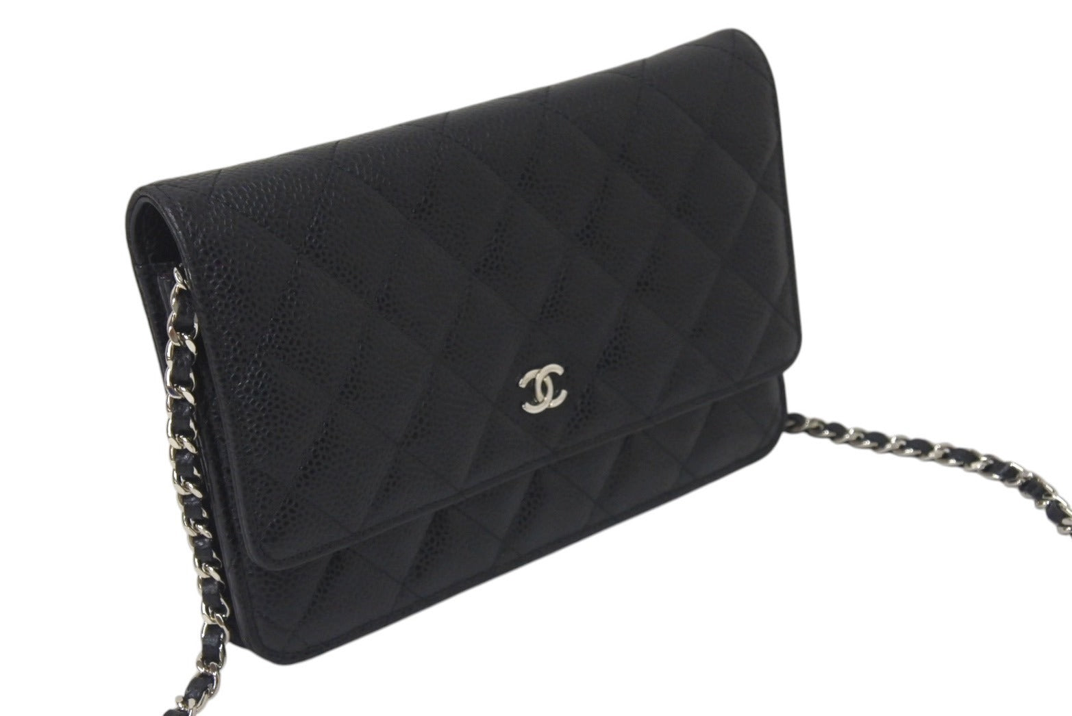 新品未使用 CHANEL シャネル チェーンウォレット 長財布 AP0250 25番台 ココマーク キャビアスキン ブラック 中古 4b000186