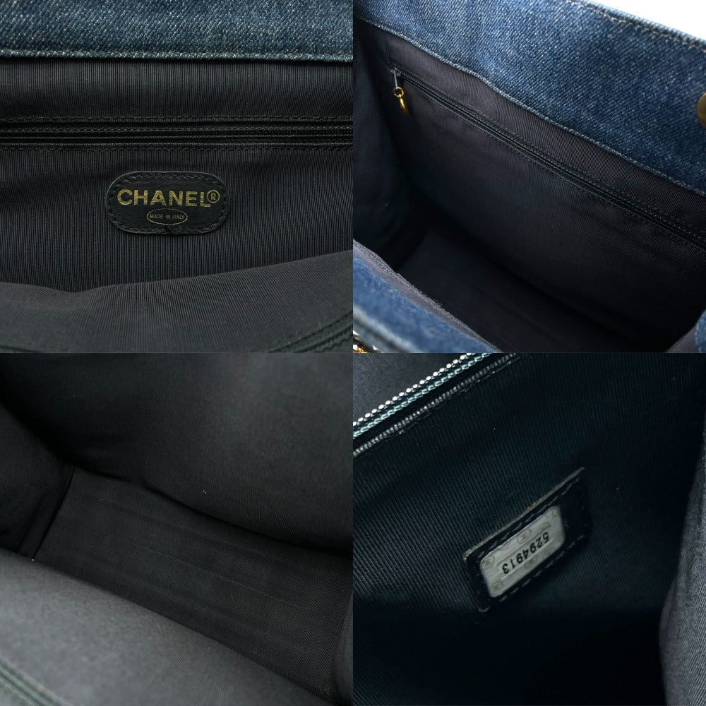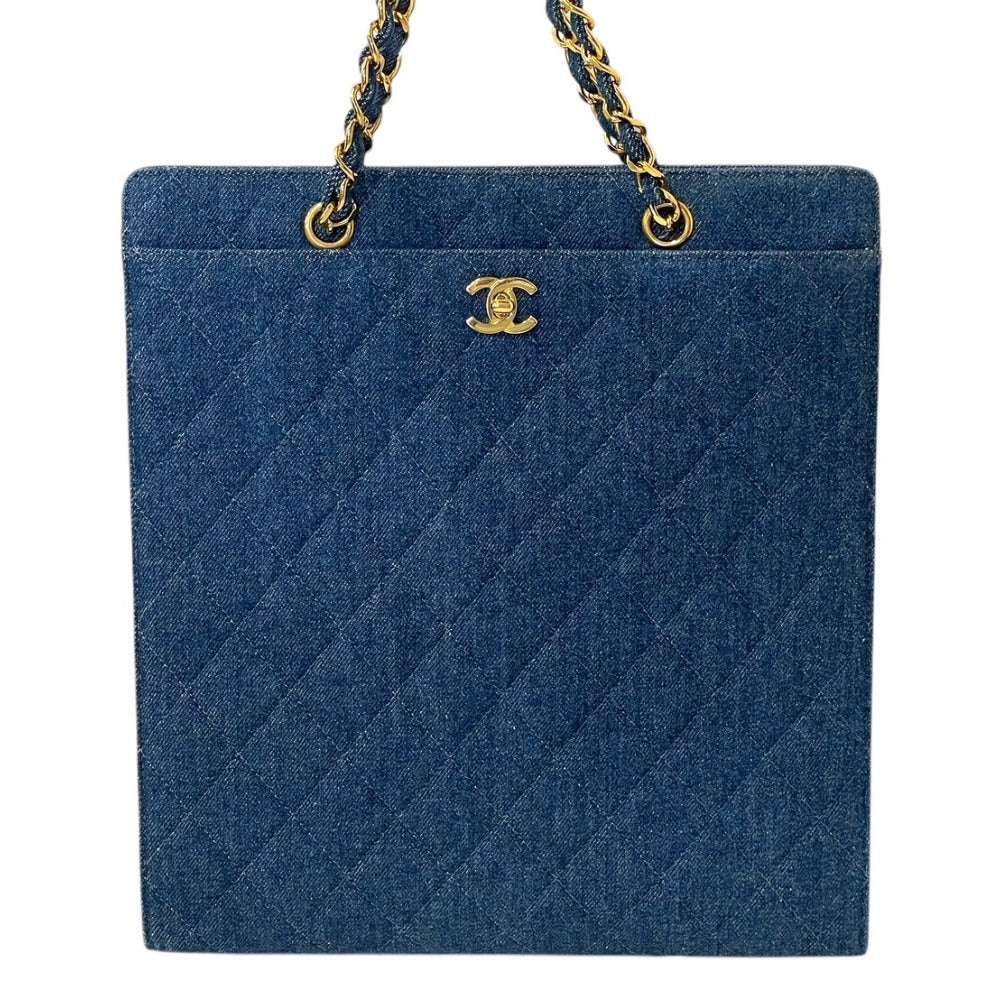 CHANEL シャネル チェーントートバッグ 5番台 デニム キルティング インディゴブルー ゴールド金具 イタリア製 美品 中古 4b000275