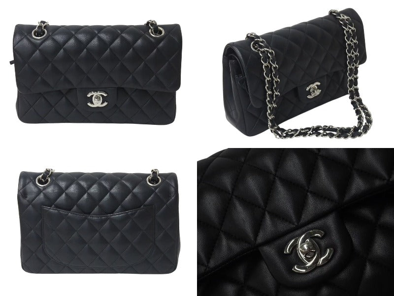 極美品 CHANEL シャネル チェーンショルダーバッグ マトラッセ23 Wフラップラップ ラムスキン ブラックシルバー 29番台 中古 4b000320
