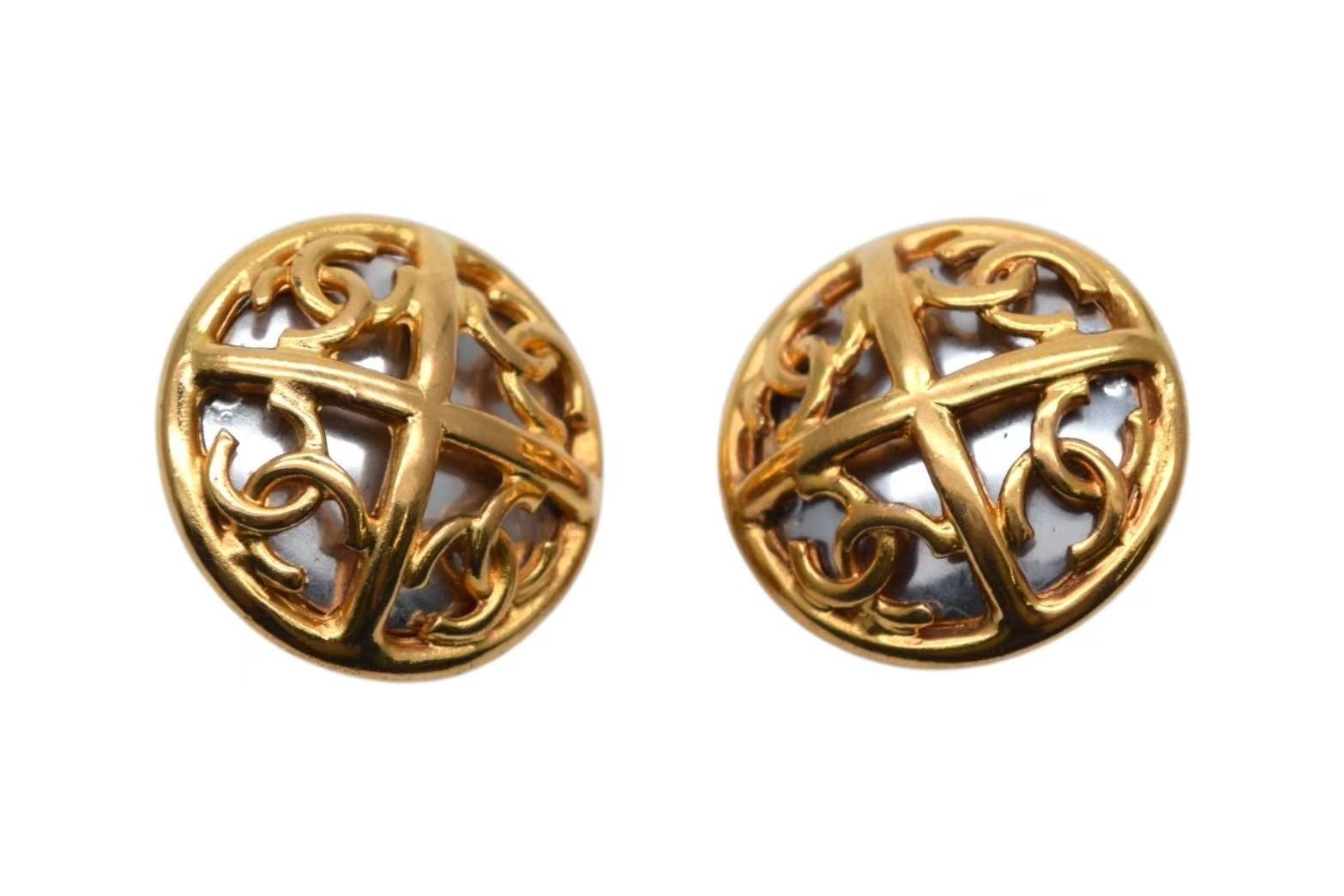 CHANEL シャネル ココマーク イヤリング 重量約20.6g 03P刻印 くり抜き ミラーデザイン ゴールド メタル 両耳用 美品 中古 4b000385