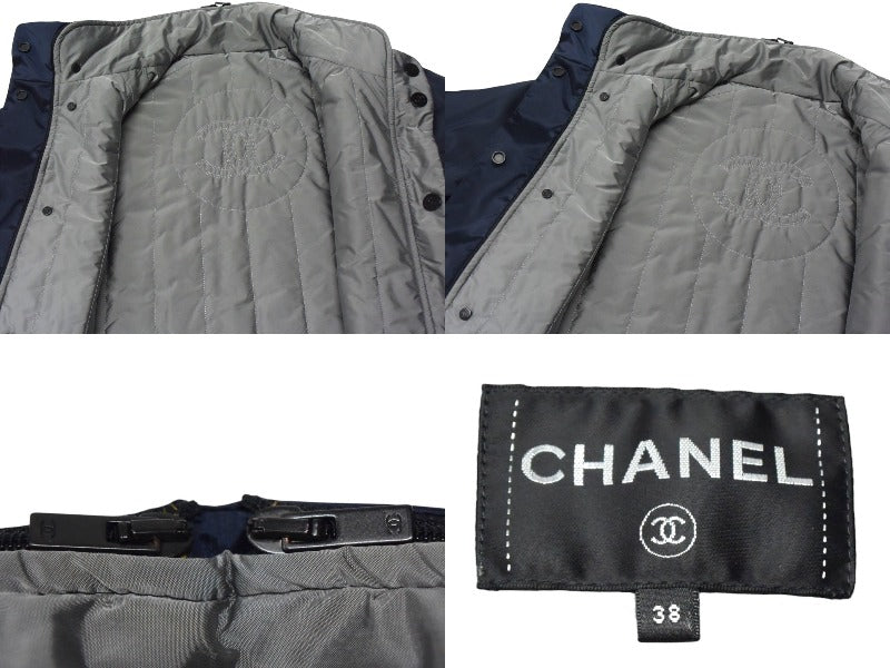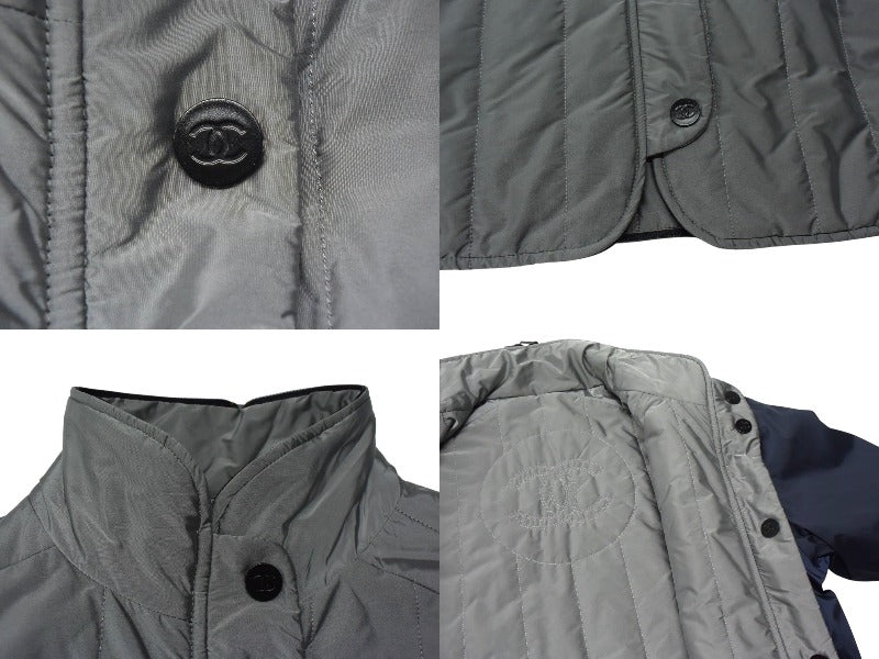 新品未使用 CHANEL シャネル ナイロン ダウン ジャケット P57416V43354 サイズ38 リバーシブル ココマーク ネイビー グレー 中古 4b000419