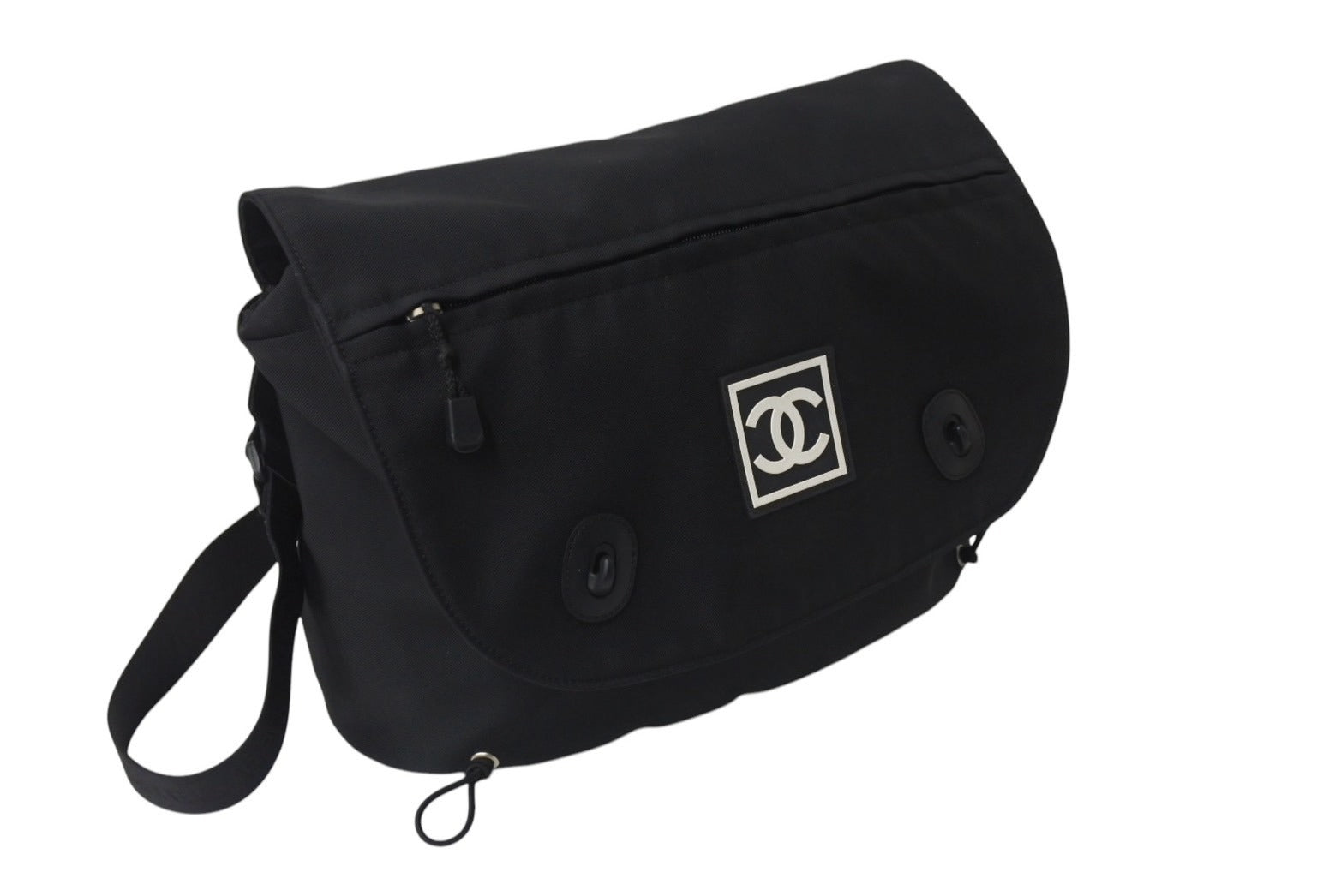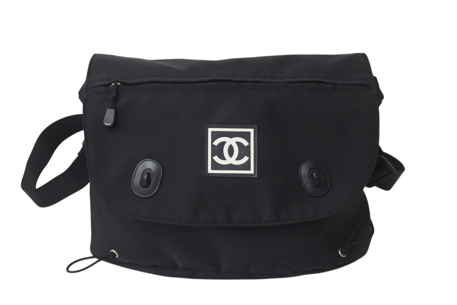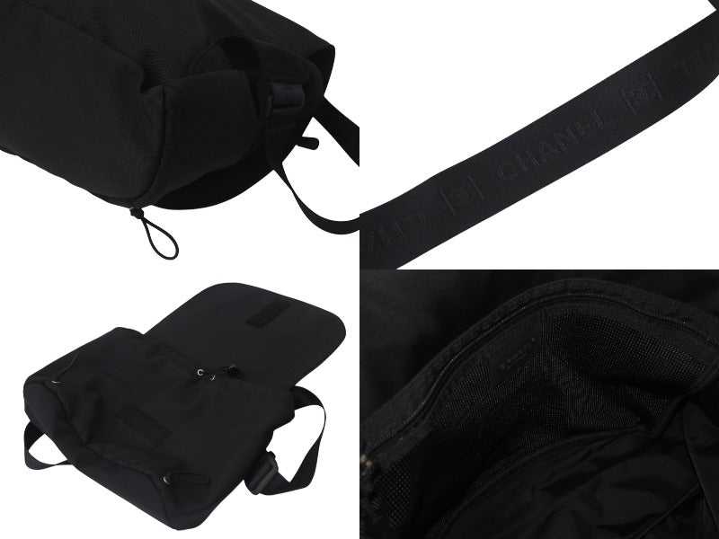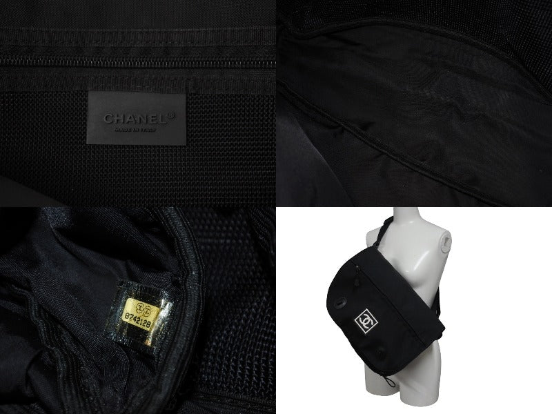 極美品 CHANEL シャネル スポーツライン ショルダーバッグ 8番台 ココマーク パッチ ナイロン ブラック シルバー金具 中古 4b001022