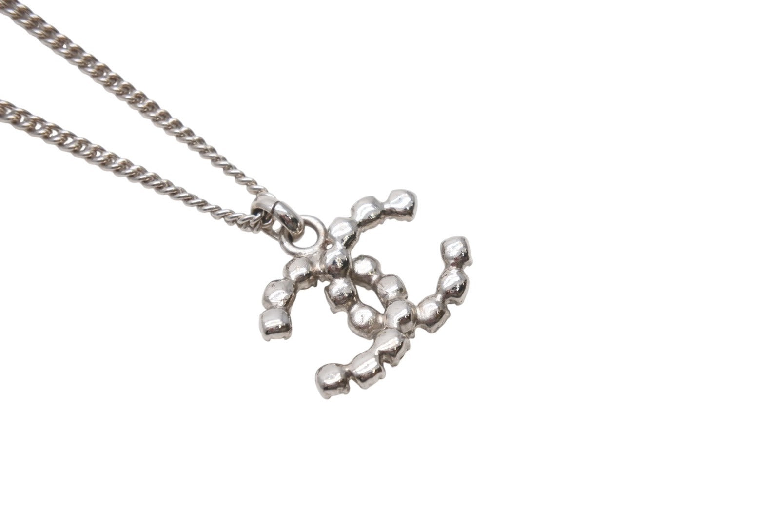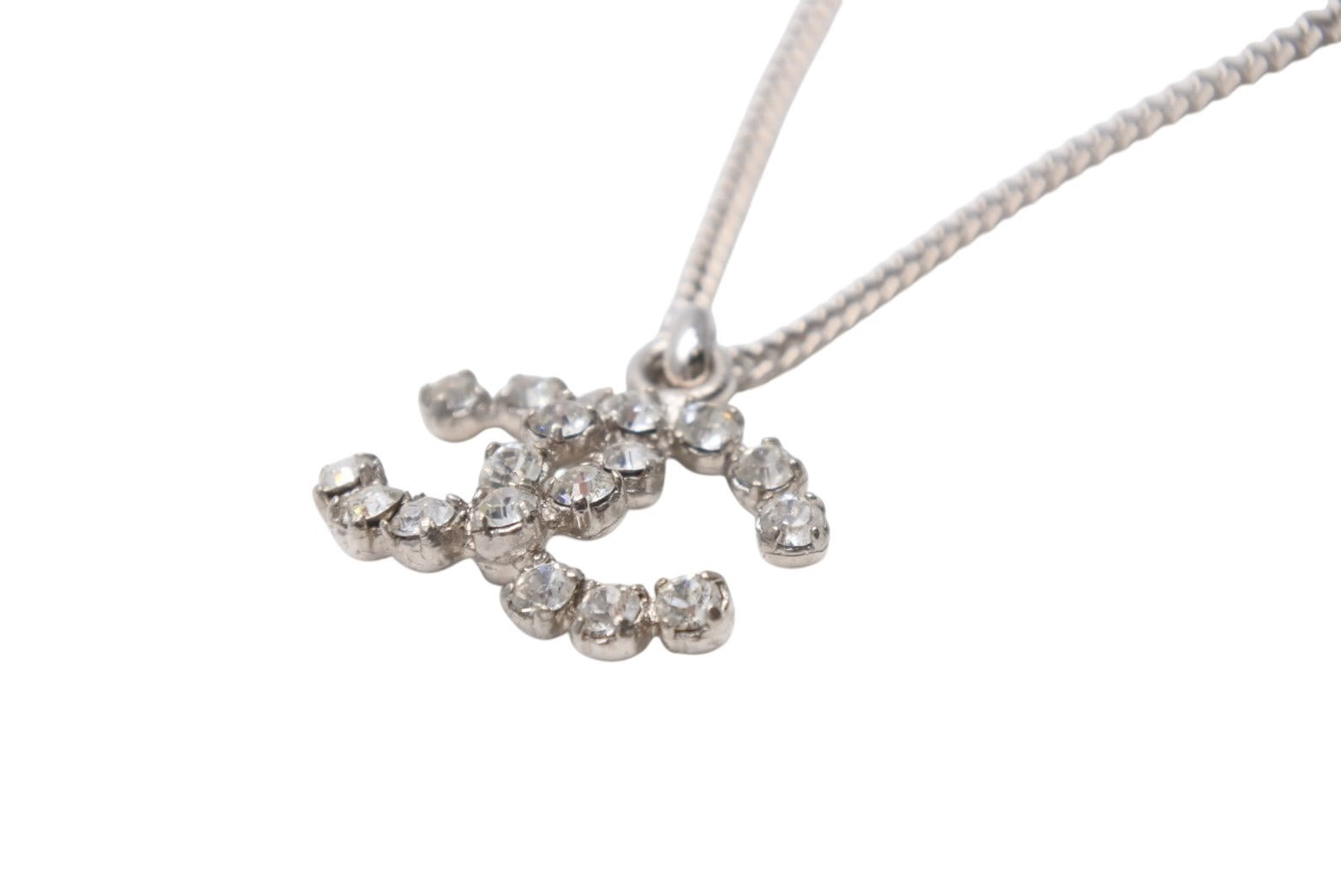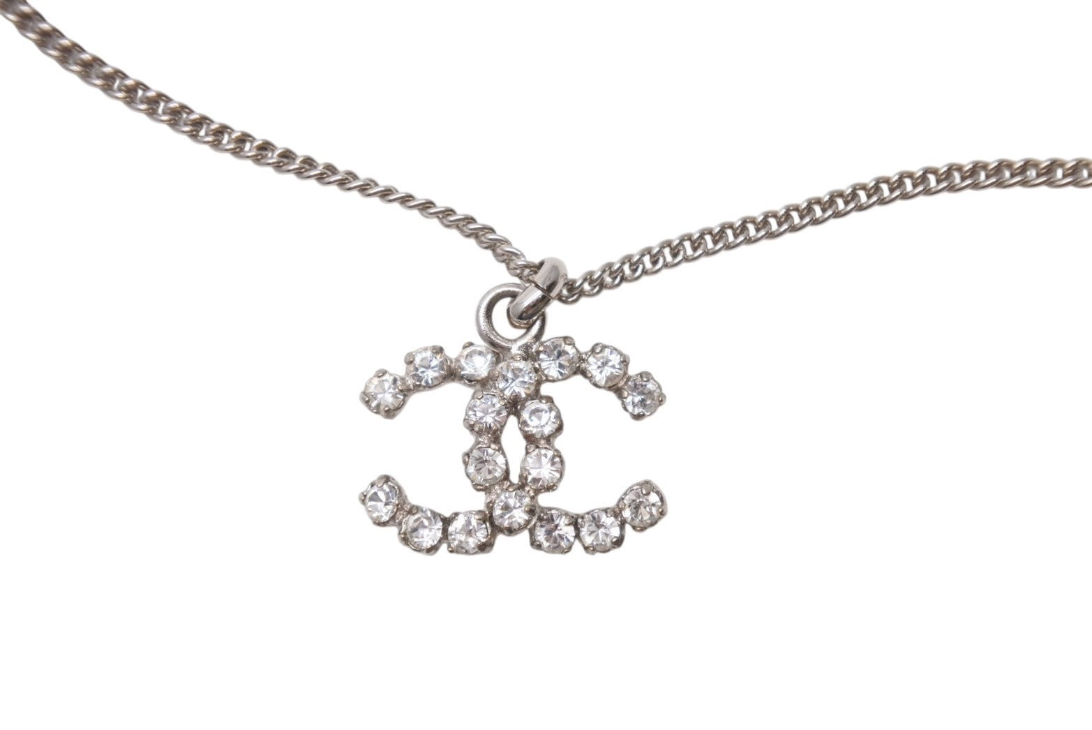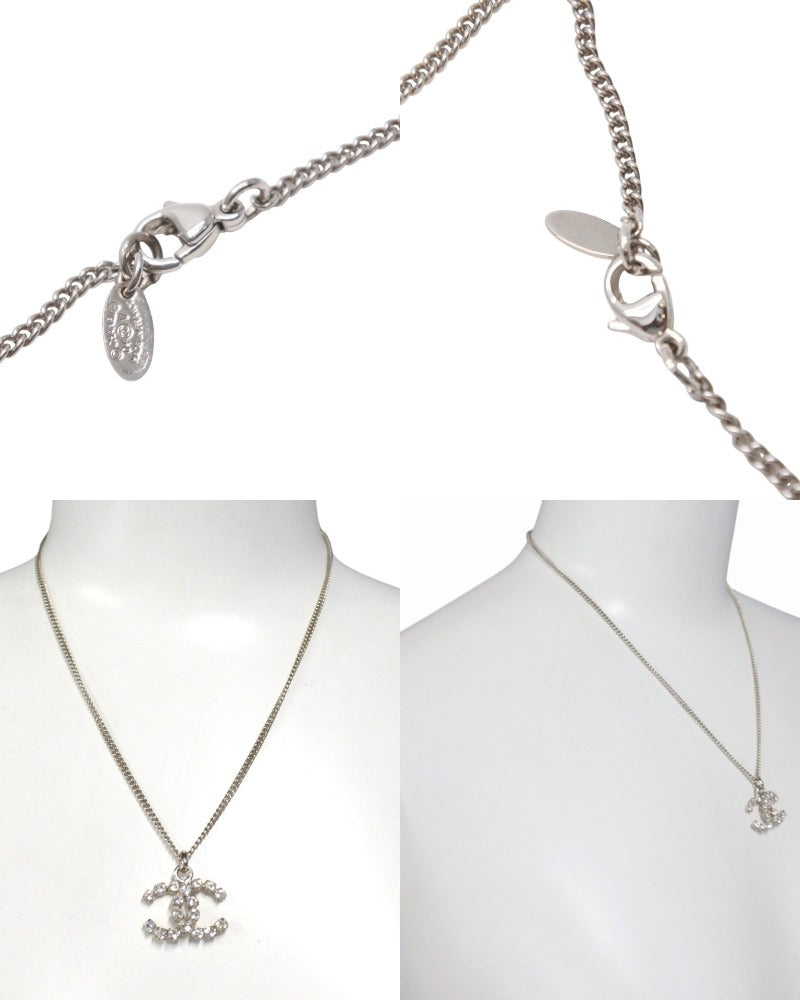 極美品 CHANEL シャネル ココマーク ネックレス 重量約7.9g 04V刻印 全長約43cm ラインストーン メタル シルバー クリア 中古 4b001036