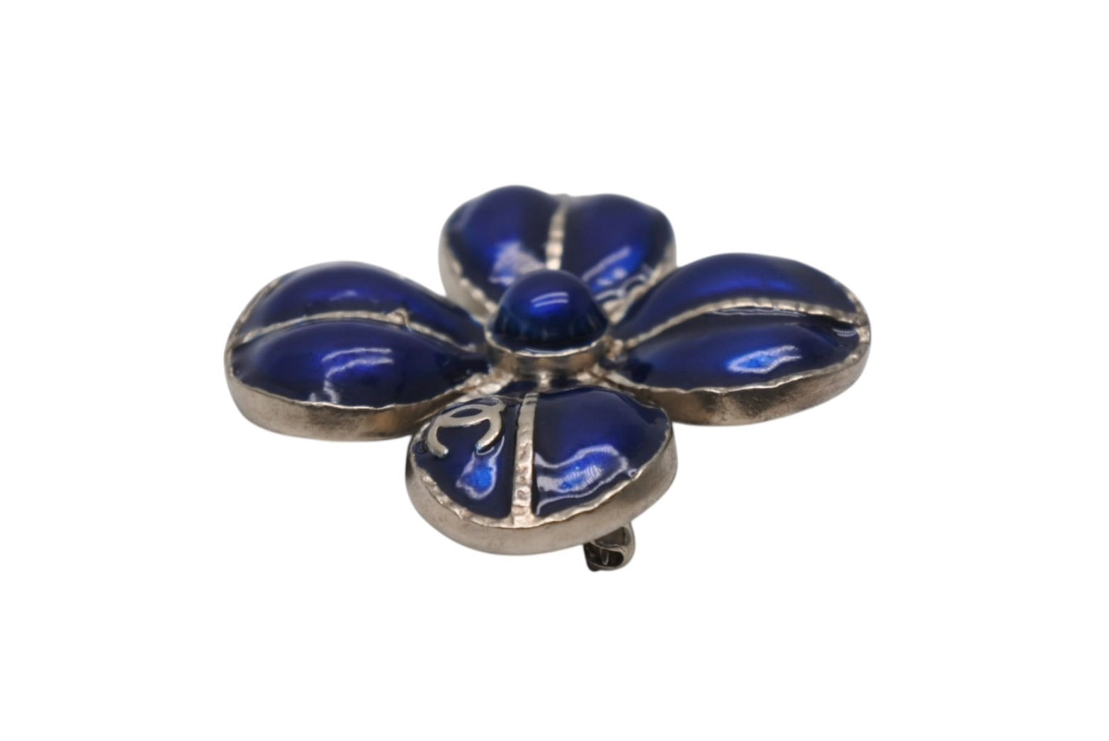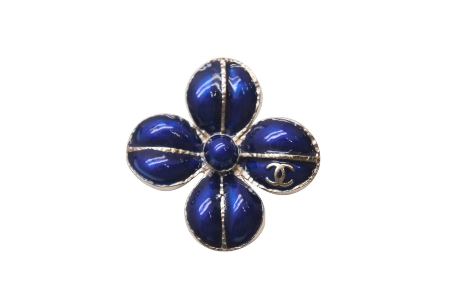 極美品 CHANEL シャネル カメリア ブローチ 重量約17.6g 07A刻印 ココマーク レジン メタル GP ゴールド ブルー 中古 4b001047