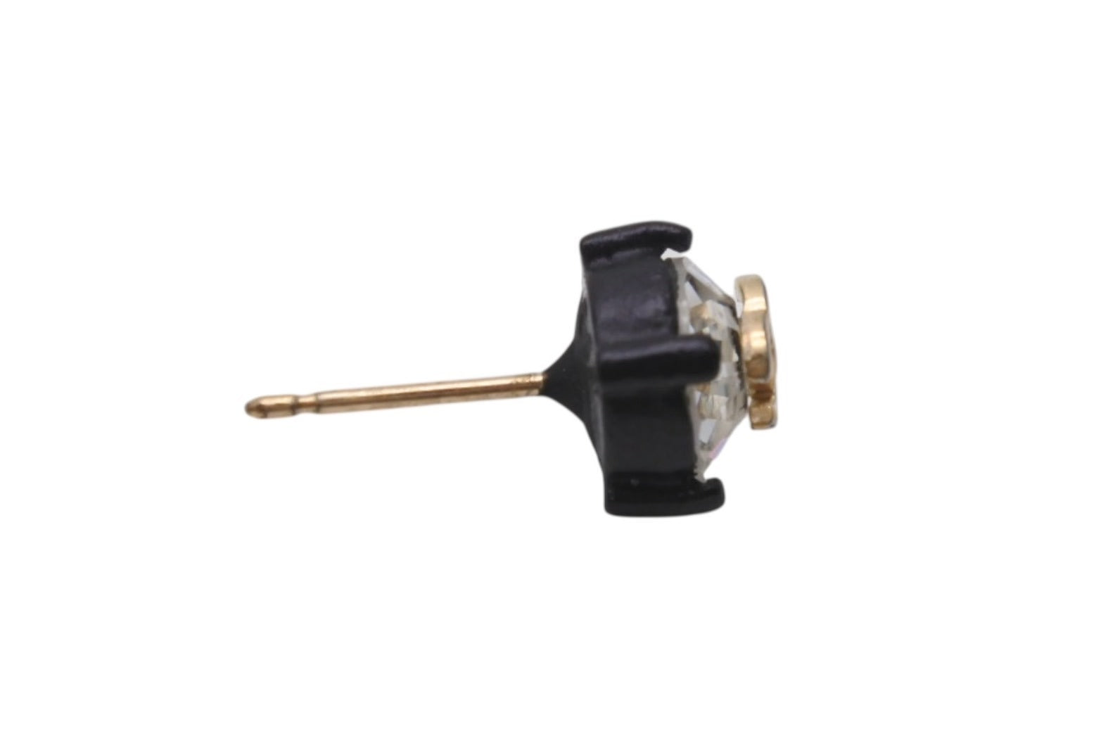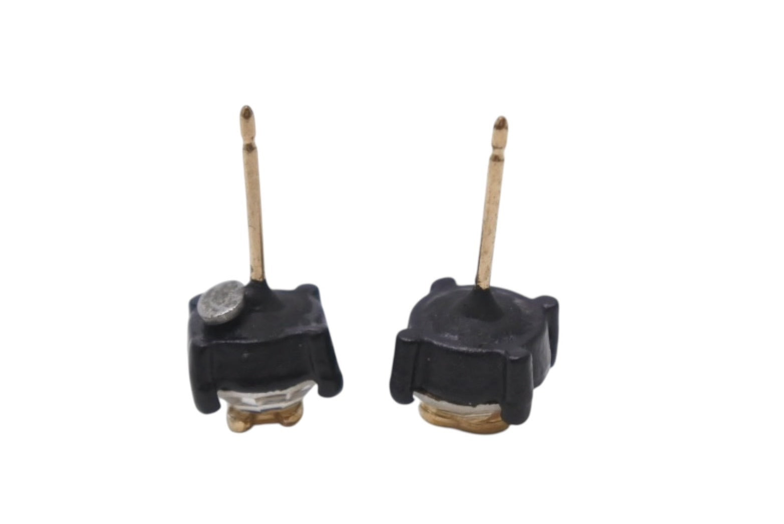 ラインストーン×ブラックカラーの組み合わせが魅力的な両耳用ピアスです。