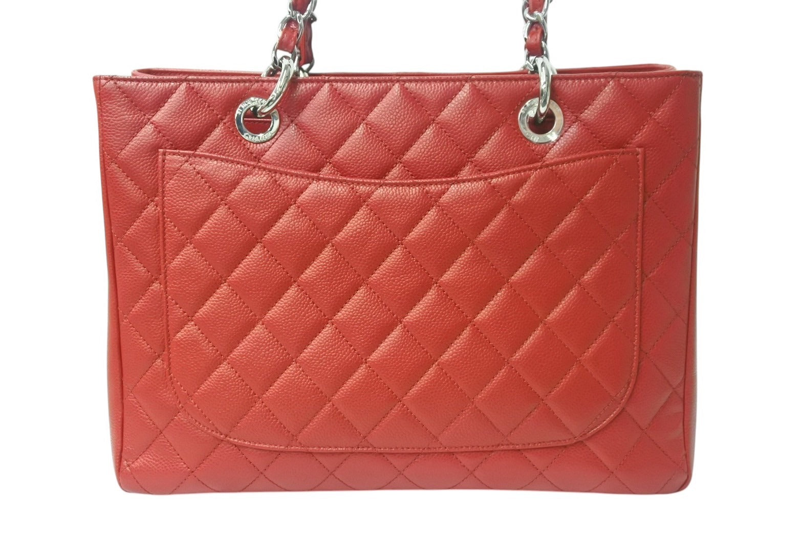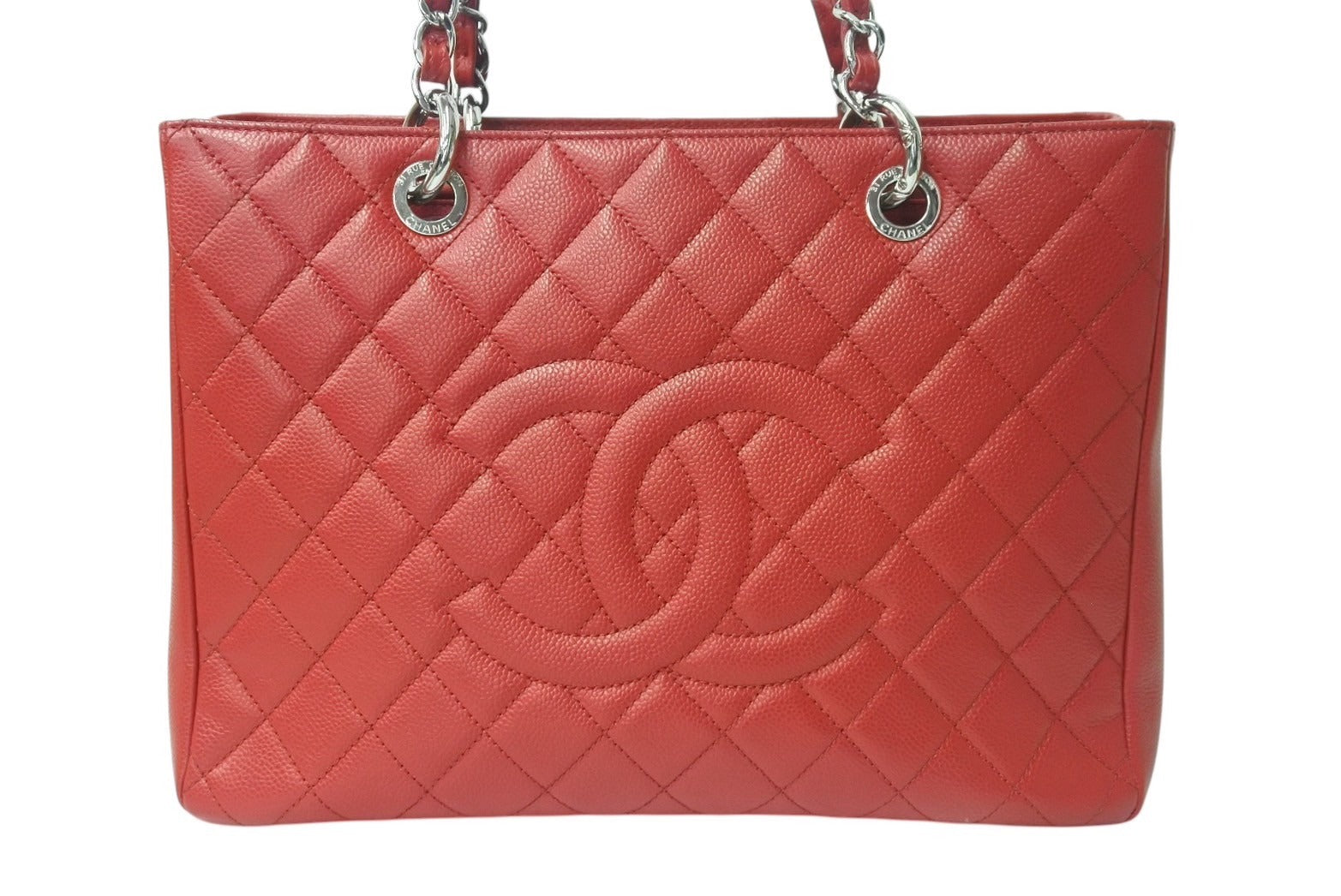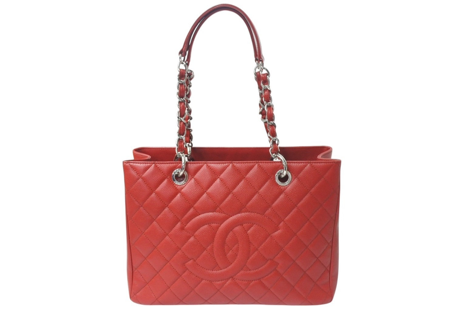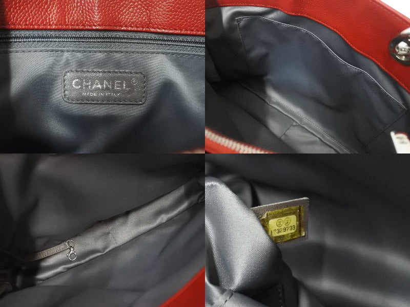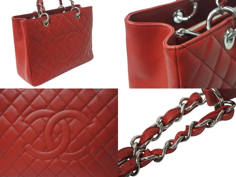 極美品 CHANEL シャネル マトラッセ GST チェーントートバッグ A50995 17番台 キャビアスキン レッド シルバー金具 中古 4b001132