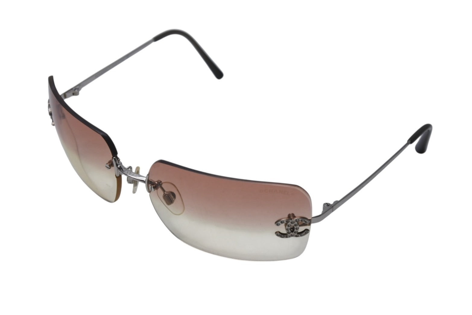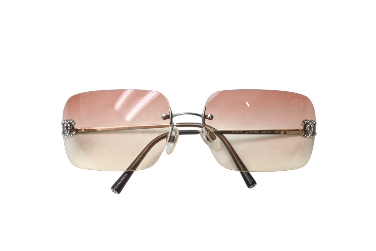 CHANEL シャネル リムレス サングラス 4017-D c.124/89 サイズ62□17 120 ココマーク ラインストーン ブラウン 美品 中古 4b001362