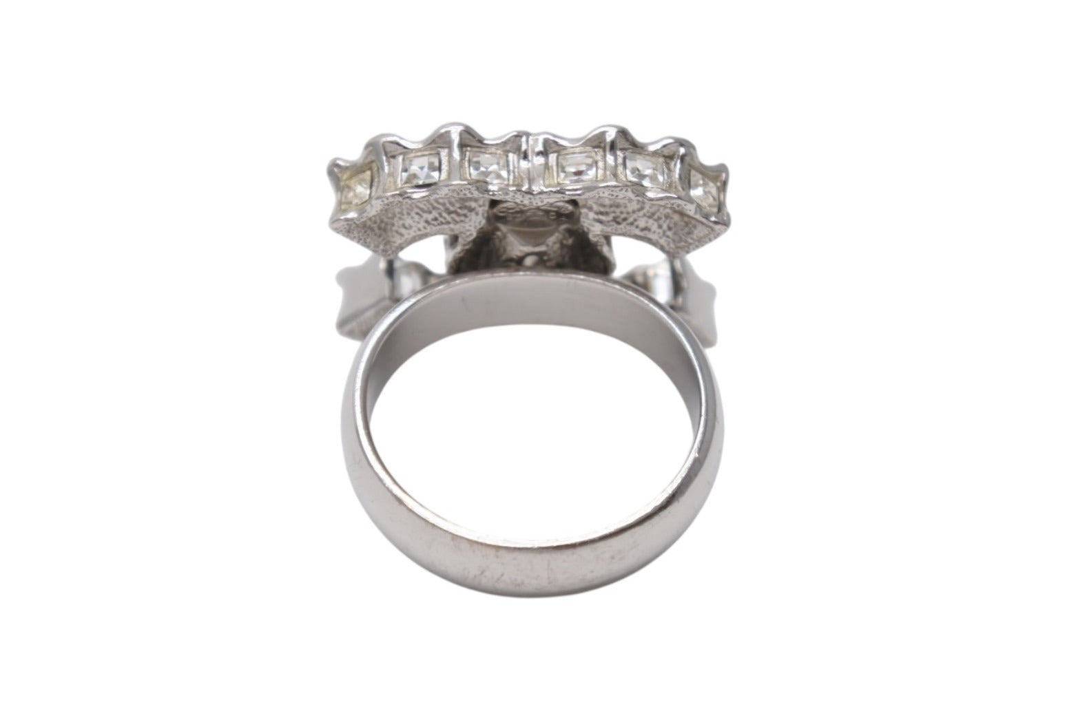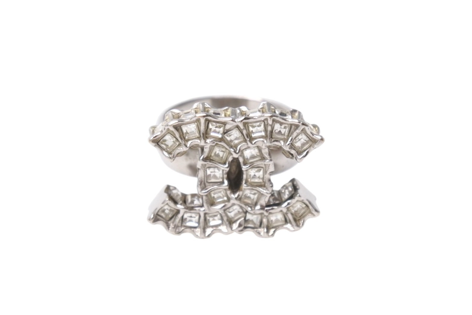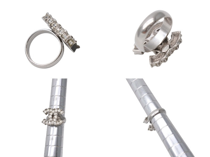 極美品 CHANEL シャネル 指輪 リング ココマーク アクセサリー B11C刻印 メタル ラインストーン シルバー 8.1g 中古 4b001366