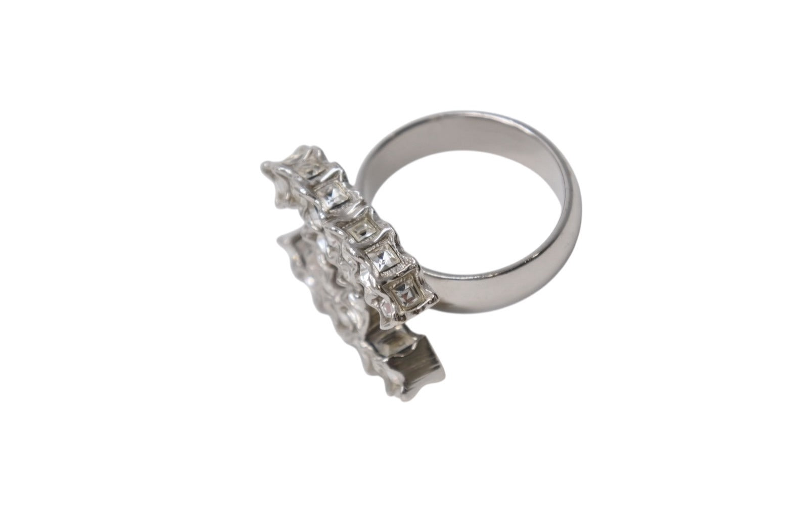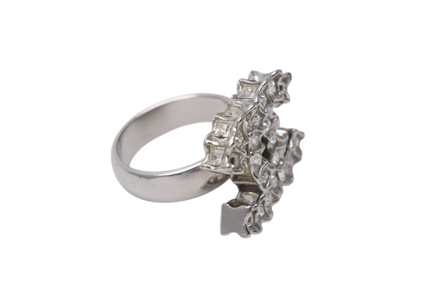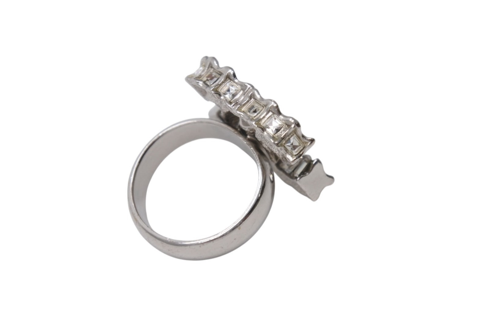 極美品 CHANEL シャネル 指輪 リング ココマーク アクセサリー B11C刻印 メタル ラインストーン シルバー 8.1g 中古 4b001366