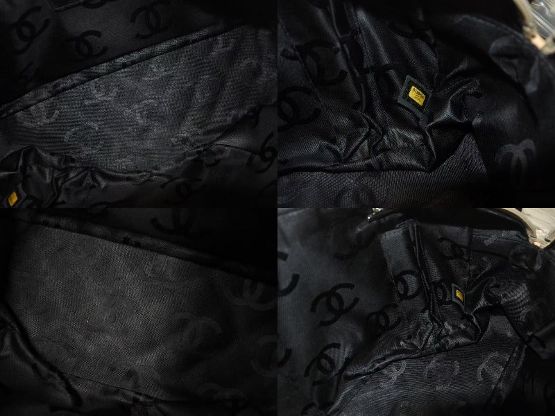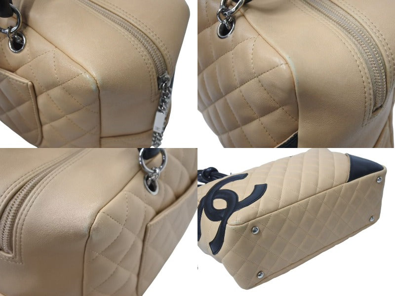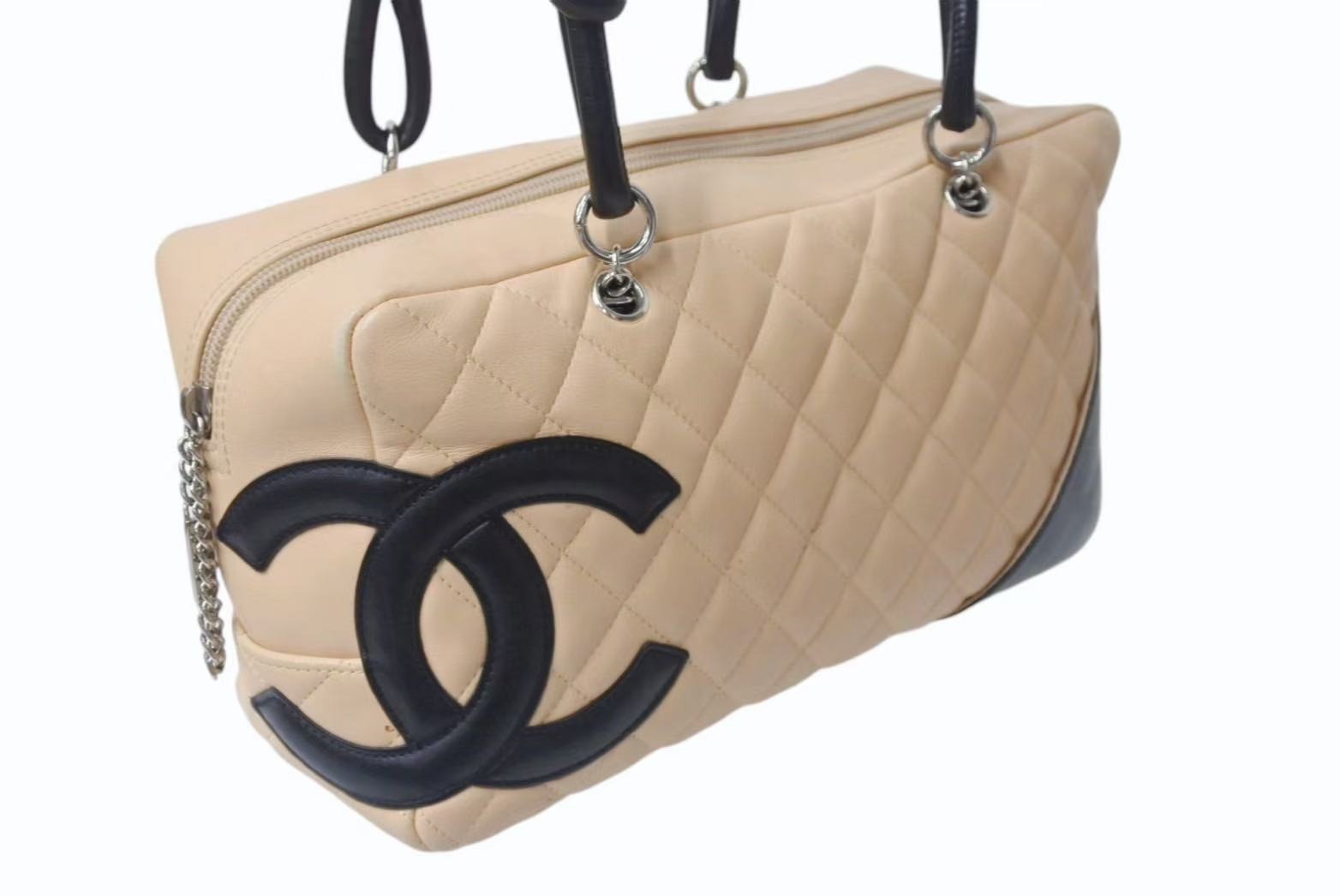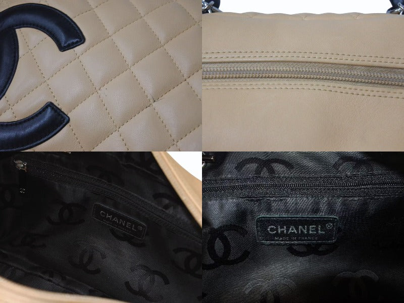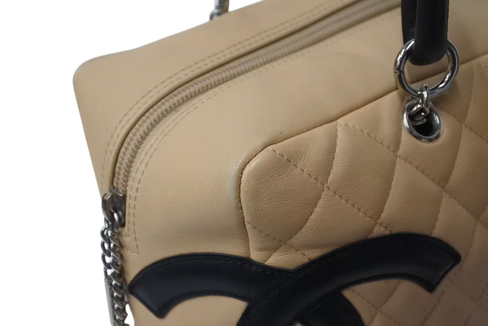 極美品 CHANEL シャネル ポーチ ハンドバッグ カンボンライン ココマーク 9番台 ラムスキン ベージュ ブラック 中古 4b001735