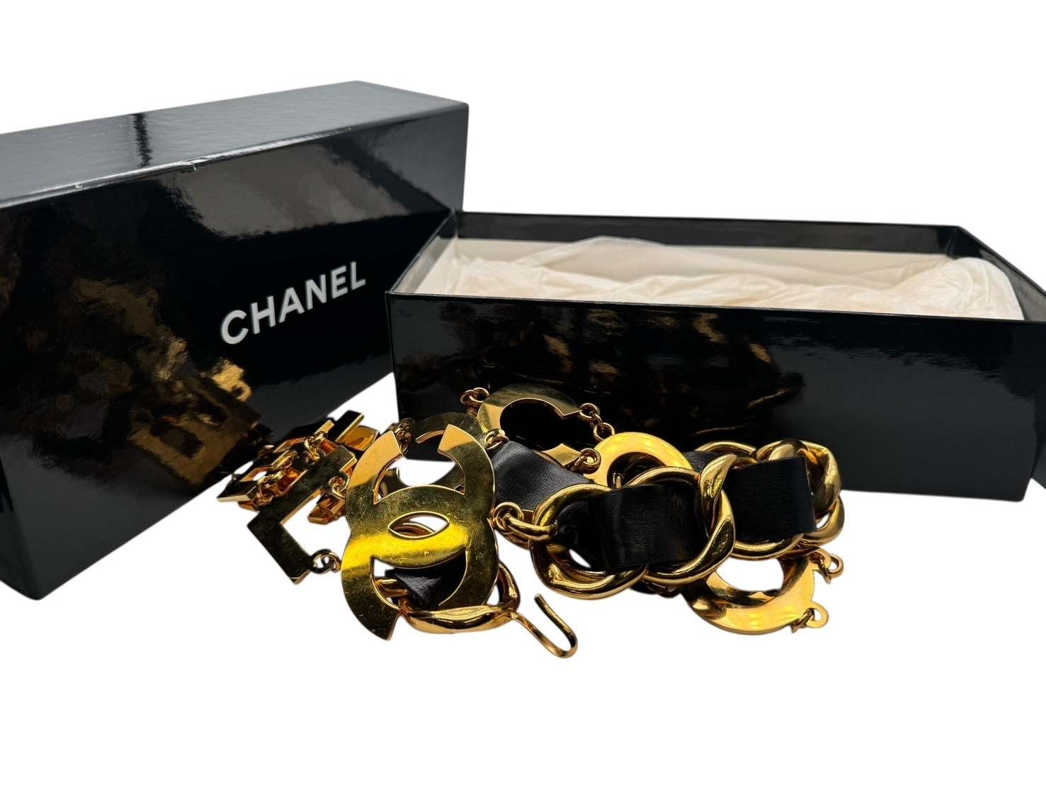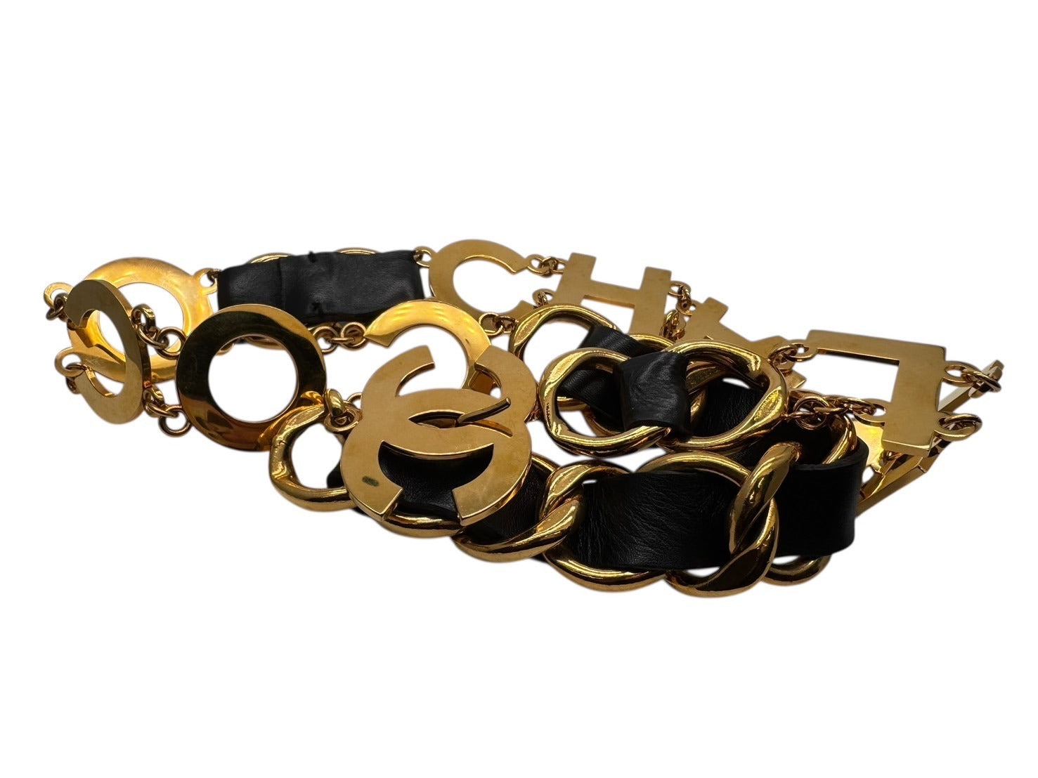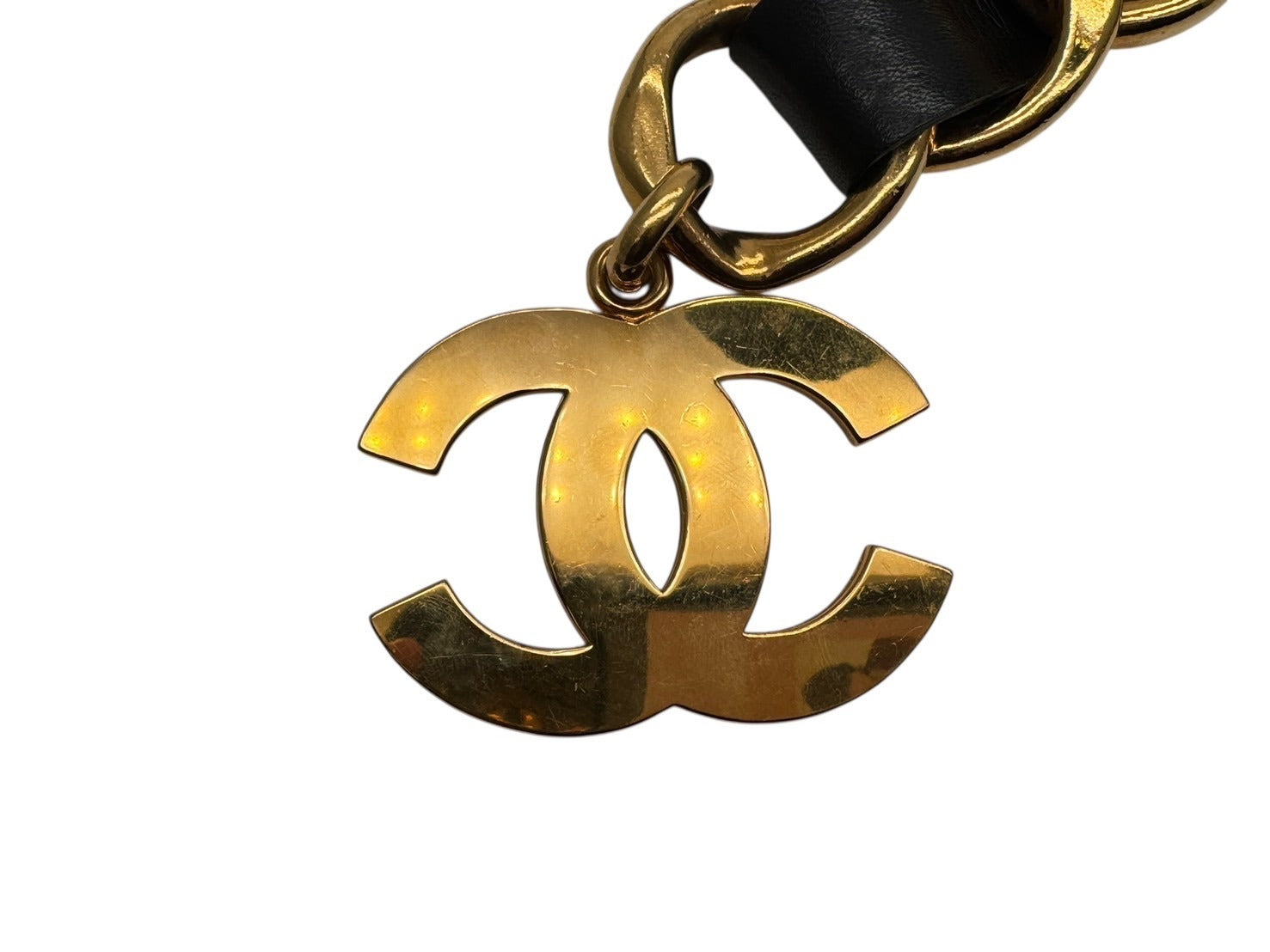 CHANEL シャネル ヴィンテージ COCO CHANELモチーフ ココマーク チェーンベルト レザー GP ゴールド 美品 中古 4b001990