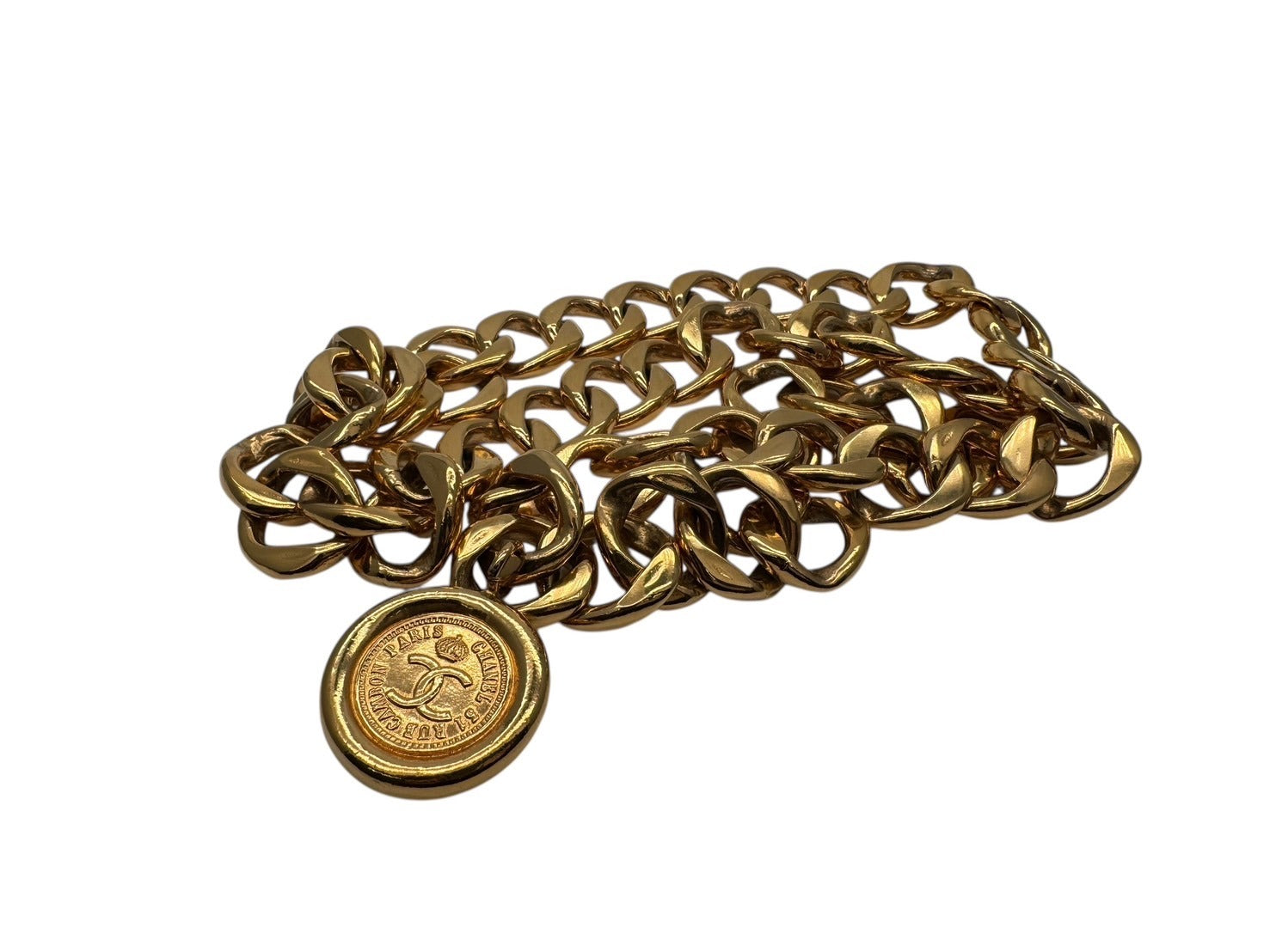 CHANEL シャネル ヴィンテージ コインモチーフ チェーンベルト ココマーク メダルチェーン 小物 GP ゴールド 美品 中古 4b001992