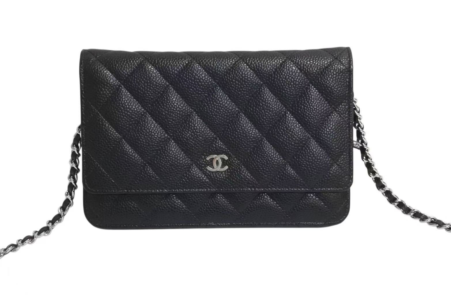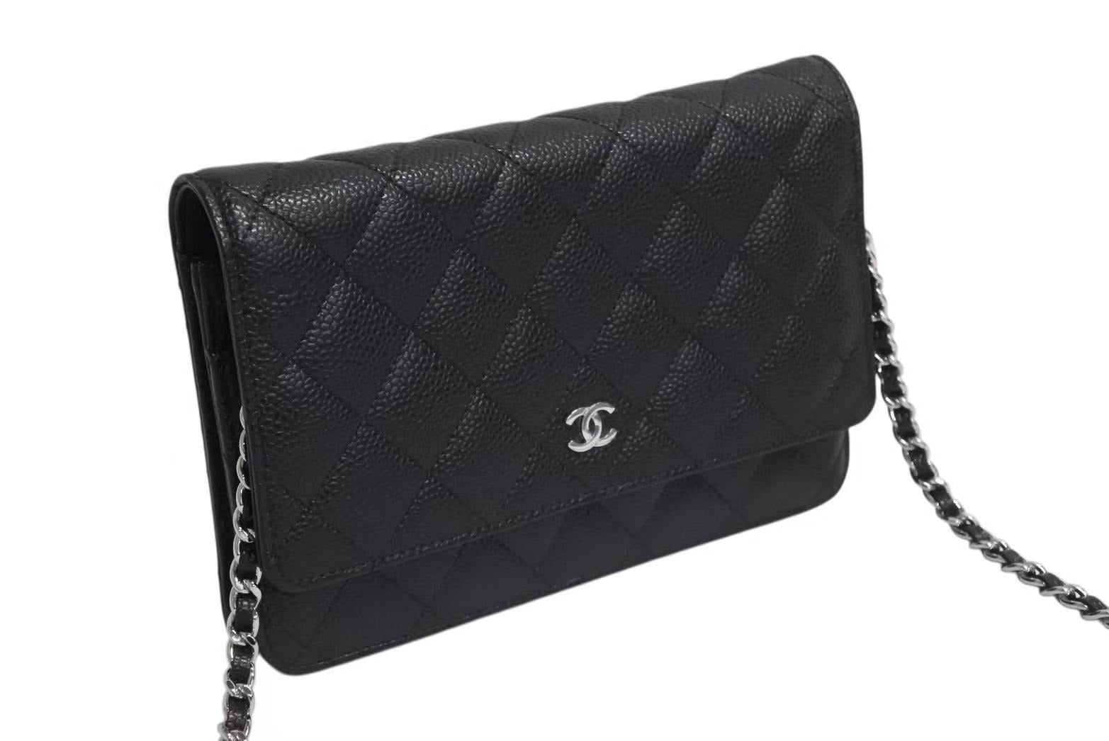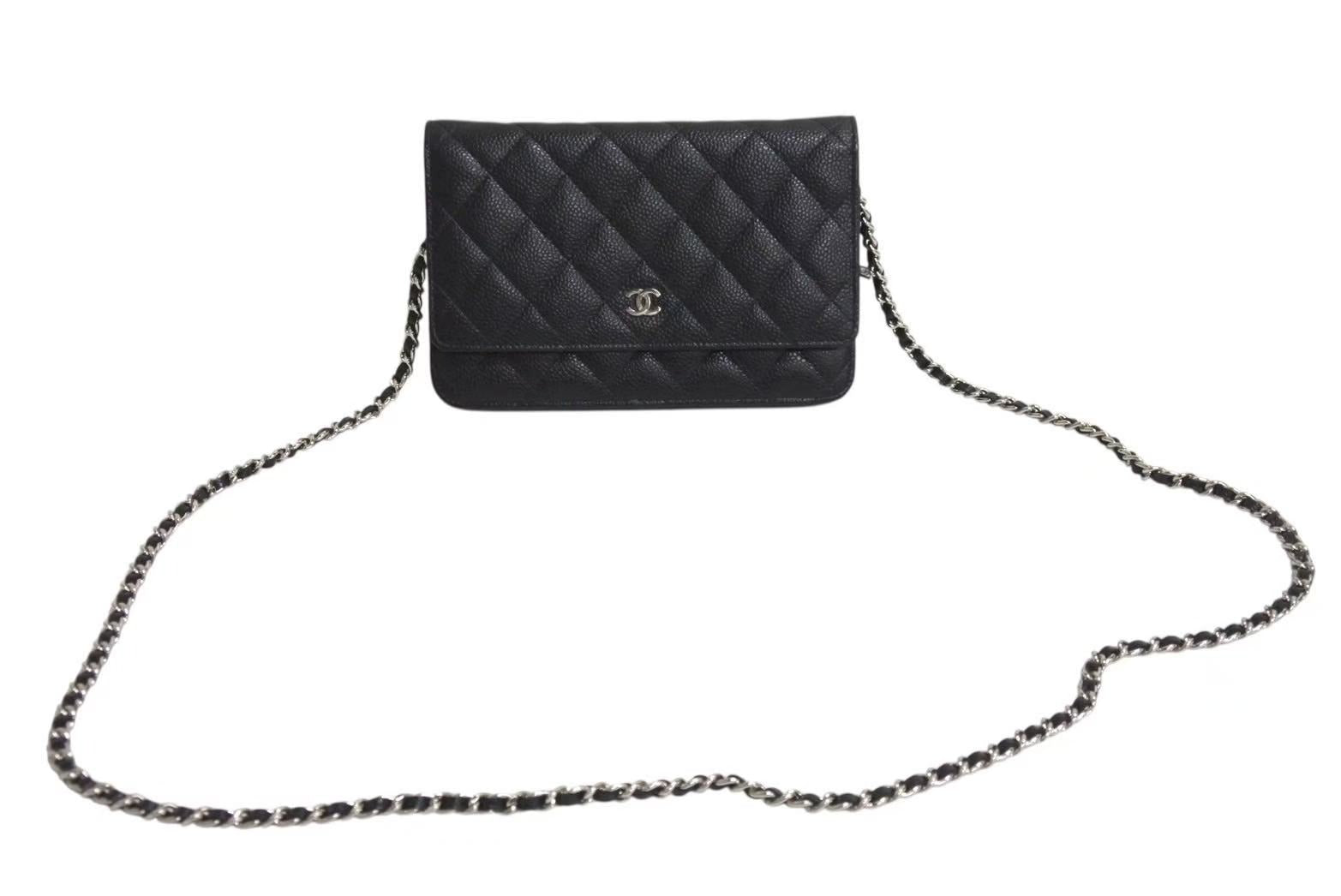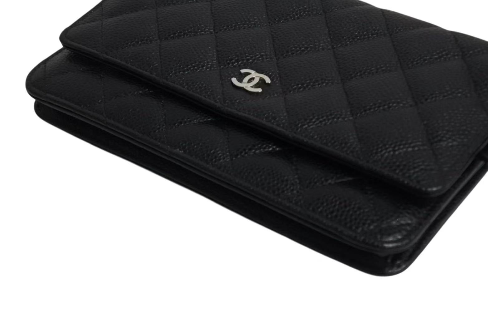 新品同様 CHANEL シャネル チェーンウォレット 長財布 AP0250 23番台 ココマーク キャビアスキン ブラック シルバー金具 中古 4b002263