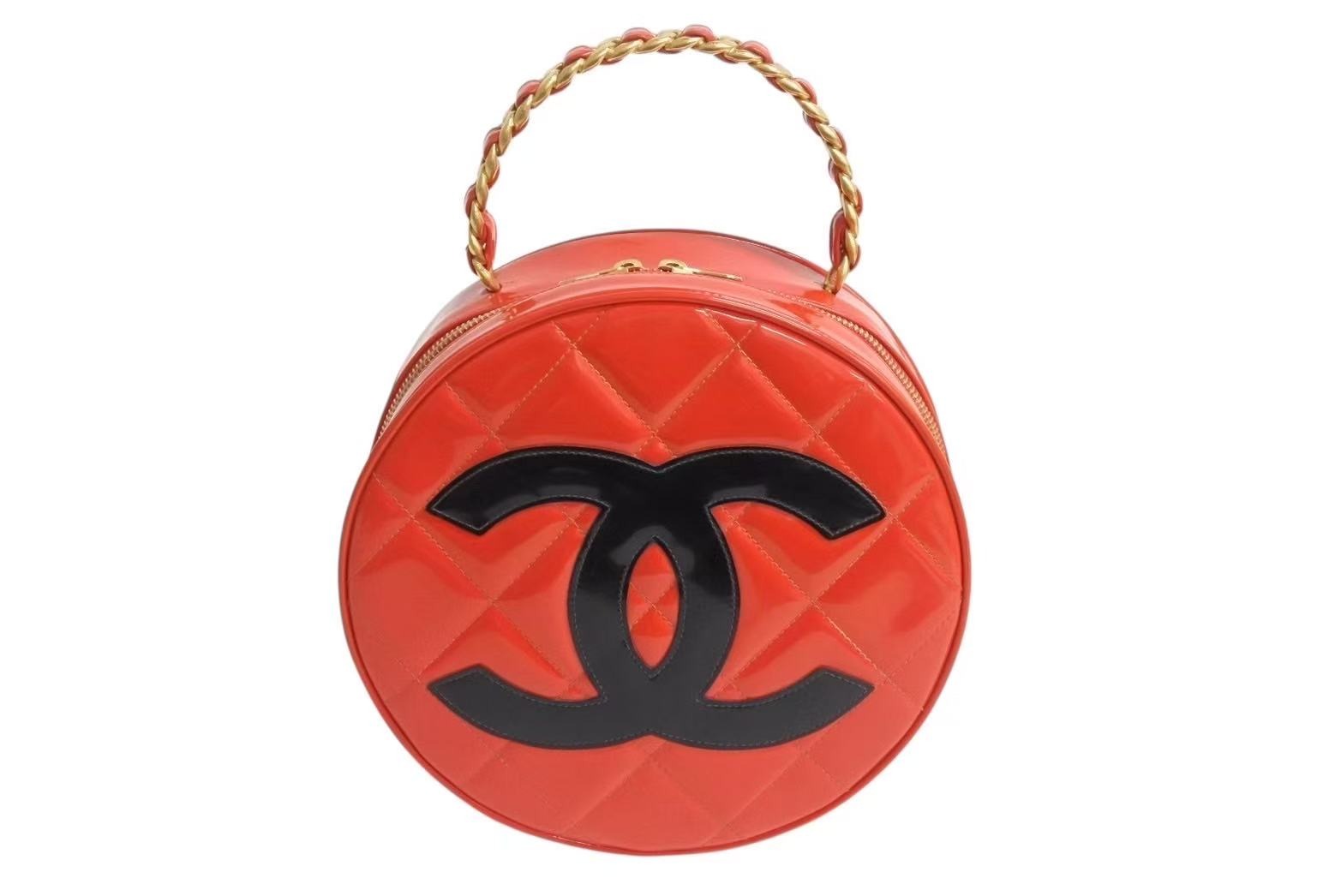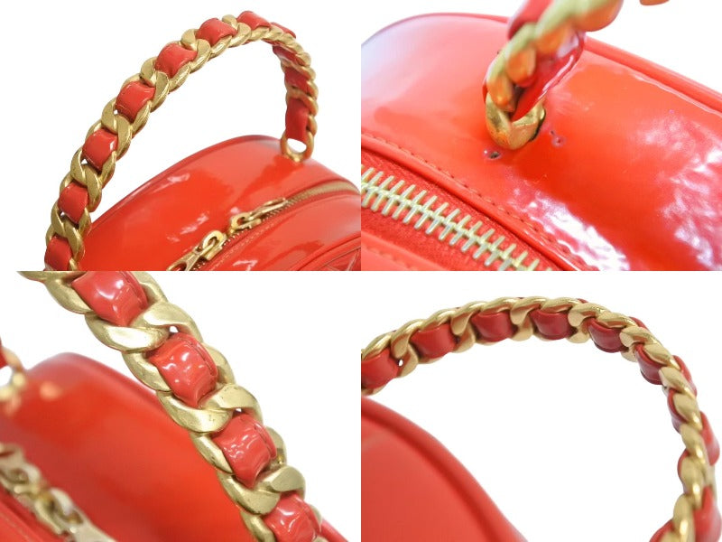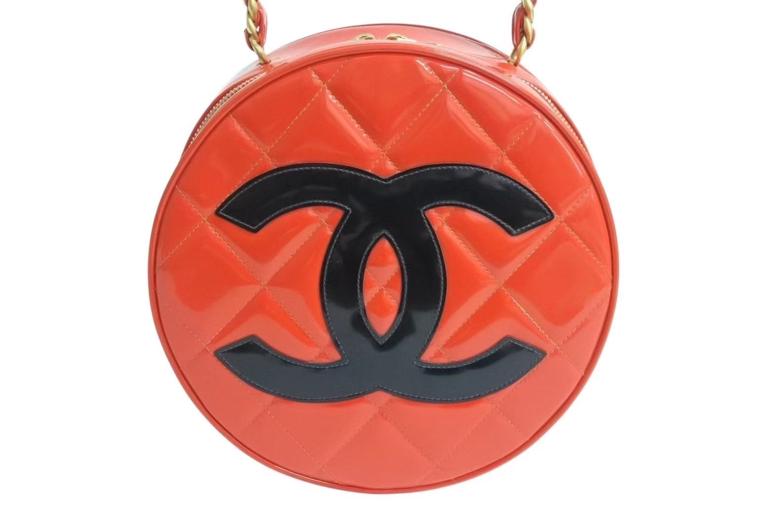 CHANEL シャネル ヴィンテージ ラウンド バニティバッグ チェーンハンドル ココマーク パテント レッド 激レア 美品 中古 4b002305