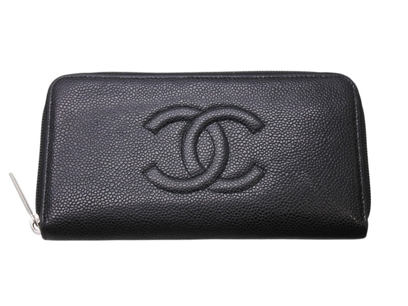 CHANEL シャネル ココマーク ラウンドファスナー 長財布 財布 A50071 18番台 キャビアスキン ブラック 良品 中古 4b002416