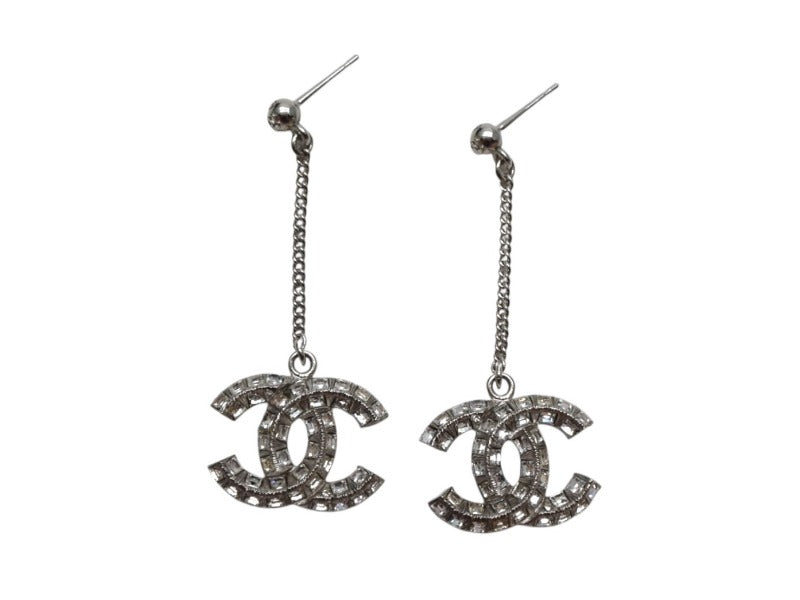 新品未使用 CHANEL シャネル チェーンピアス 重量約11.0g B19V刻印 メタル ラインストーン シルバー クリア 両耳用 ぶら下がり 中古 4c071430
