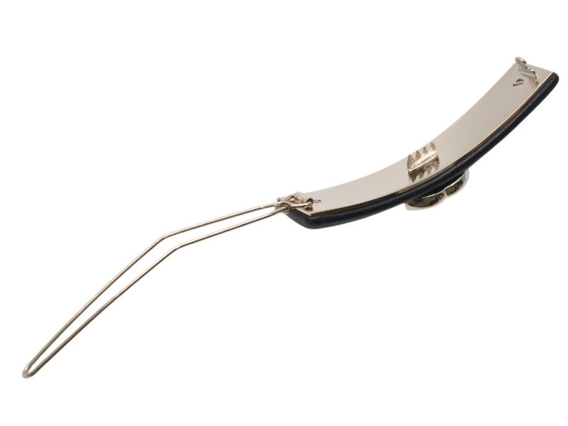 極美品 CHANEL シャネル ココマーク バレッタ ヘアピン B21S刻印 レザー メタル GP ゴールド ブラック 中古 4b002435