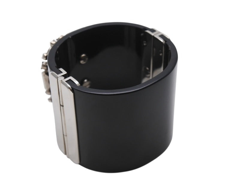CHANEL シャネル ココマーク バングル ブレスレット 08C刻印 プラスチック メタル ブラック ラインストーン ピンク シルバー金具 美品 中古 4b002439
