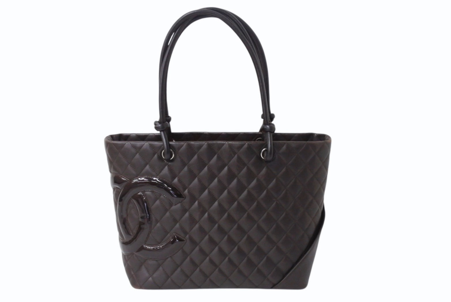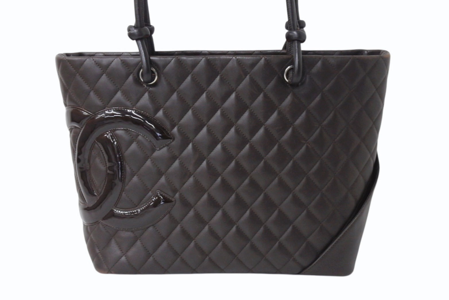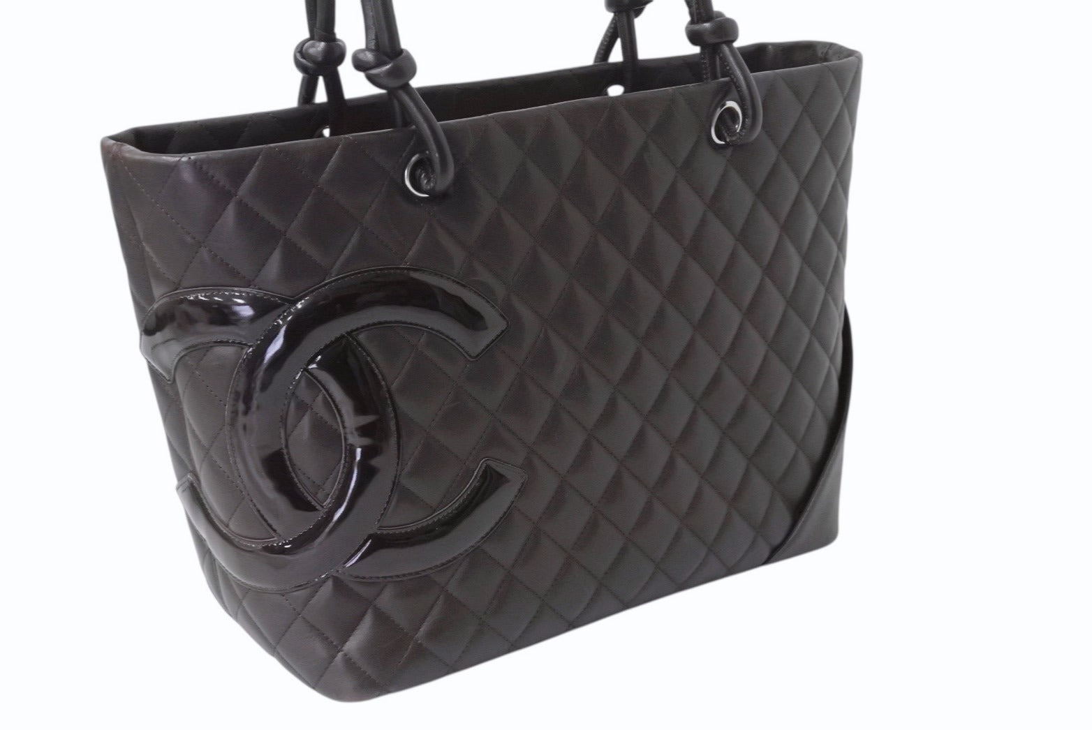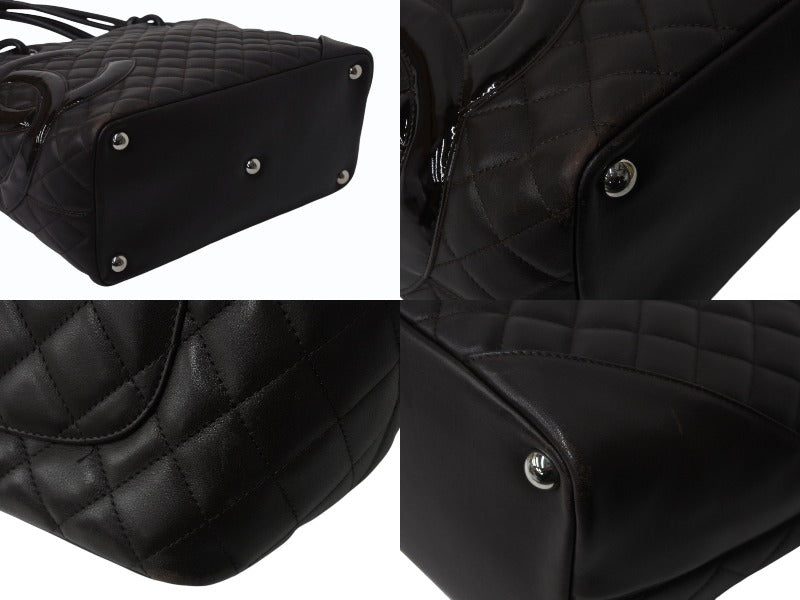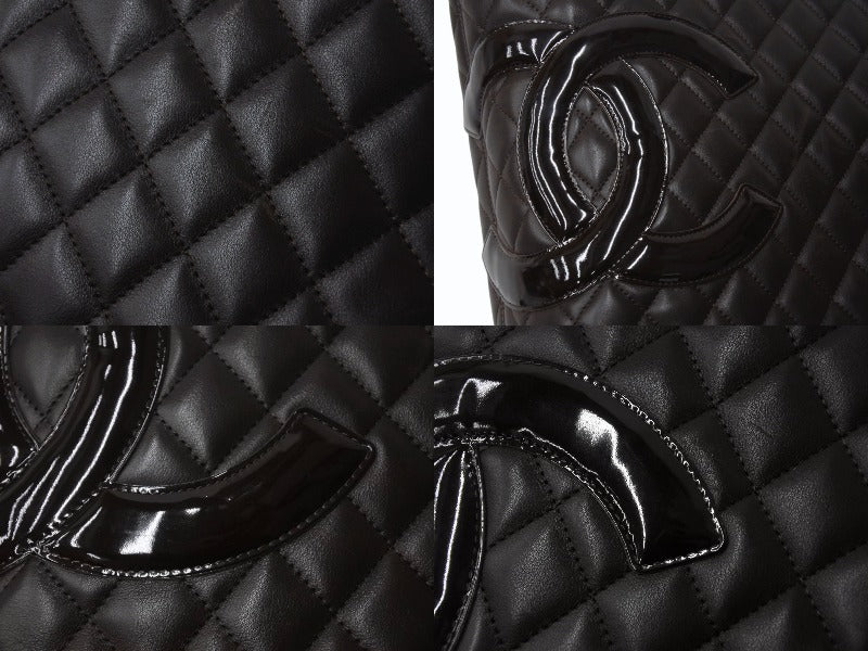 CHANEL シャネル カンボンライン ラージトートバッグ 10番台 A25169 ココマーク カーフスキン パテントレザー ブラウン 美品 中古 4b002692
