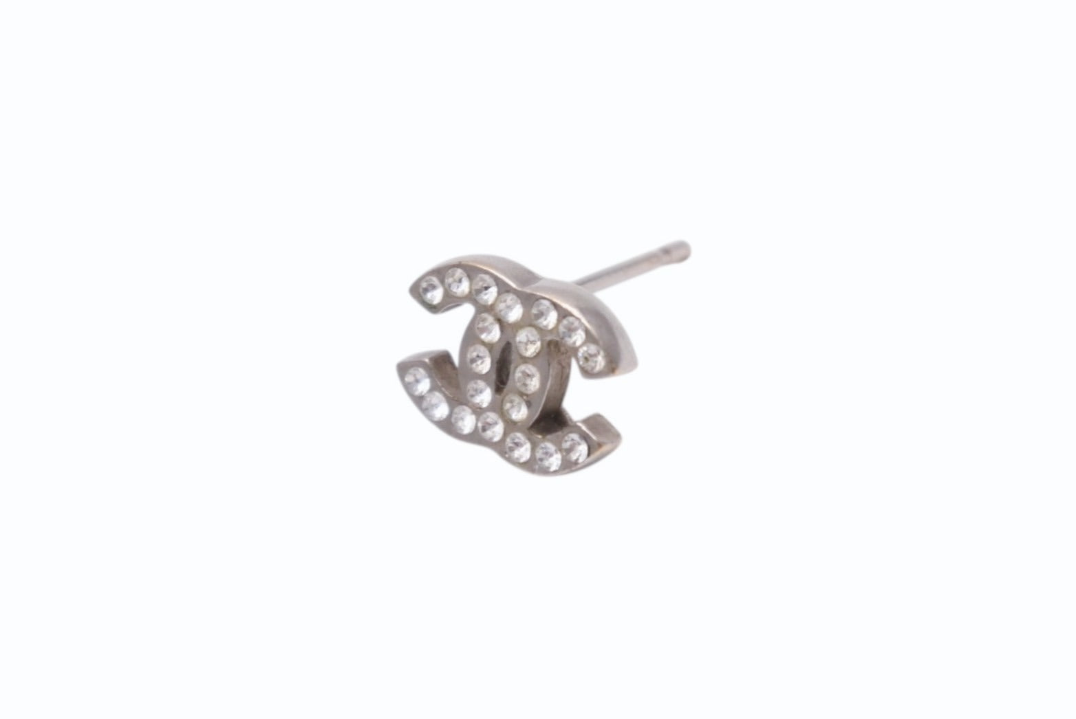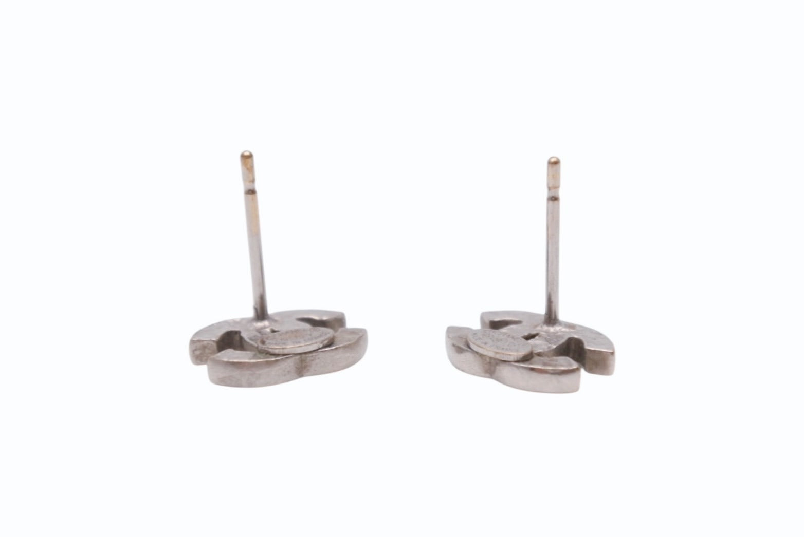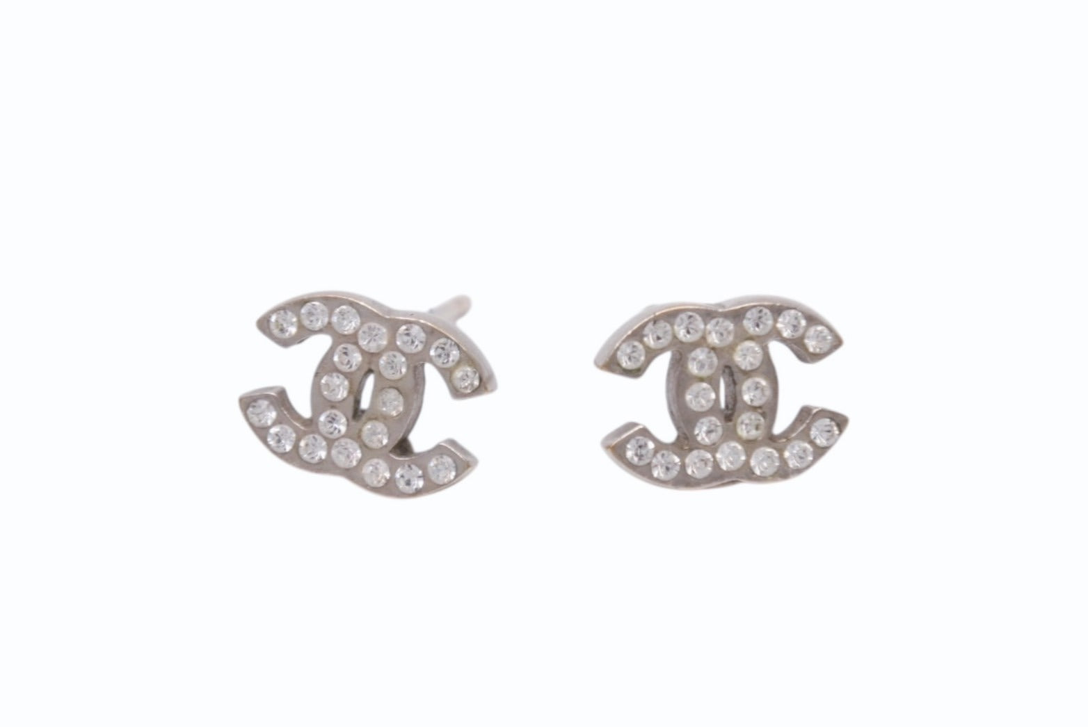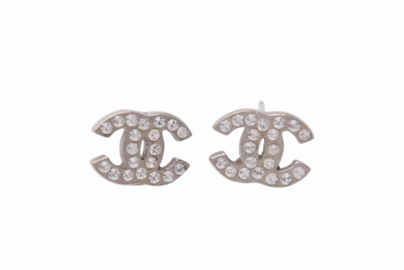 極美品 CHANEL シャネル ピアス ココマーク 両耳 09V刻印 メタル ラインストーン シルバー 0.8g 中古4b002822