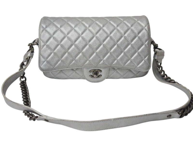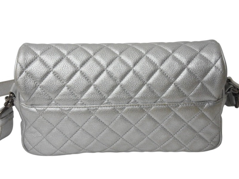 CHANEL シャネル ショルダーバッグ マトラッセ シルバー カーフスキン 21番台 アンティークシルバー金具 美品 中古 4b002849