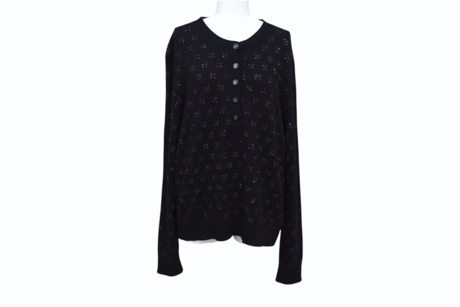 CHANEL シャネル ニット 長袖トップス メンズ P59800K07807 サイズ46 ヘンリーネック ココマーク ココボタン カシミア ブラック 美品 中古 4b002942