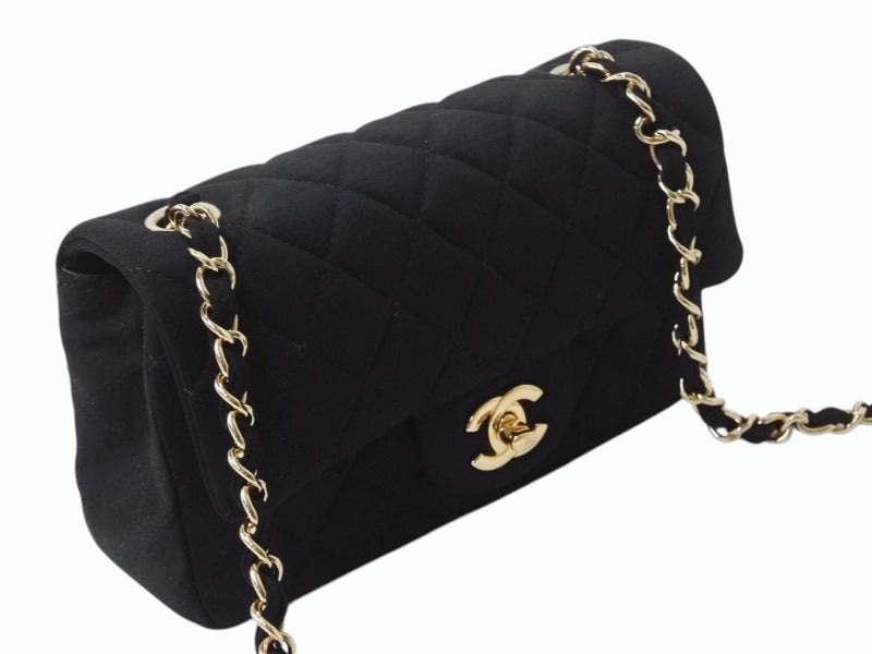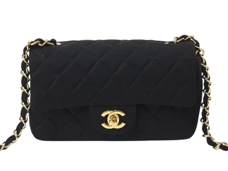 CHANEL シャネル ミニマトラッセ シングルフラップ シングルチェーン 19番台 コットンジャージー ブラック ゴールド金具 美品 中古 4b003011