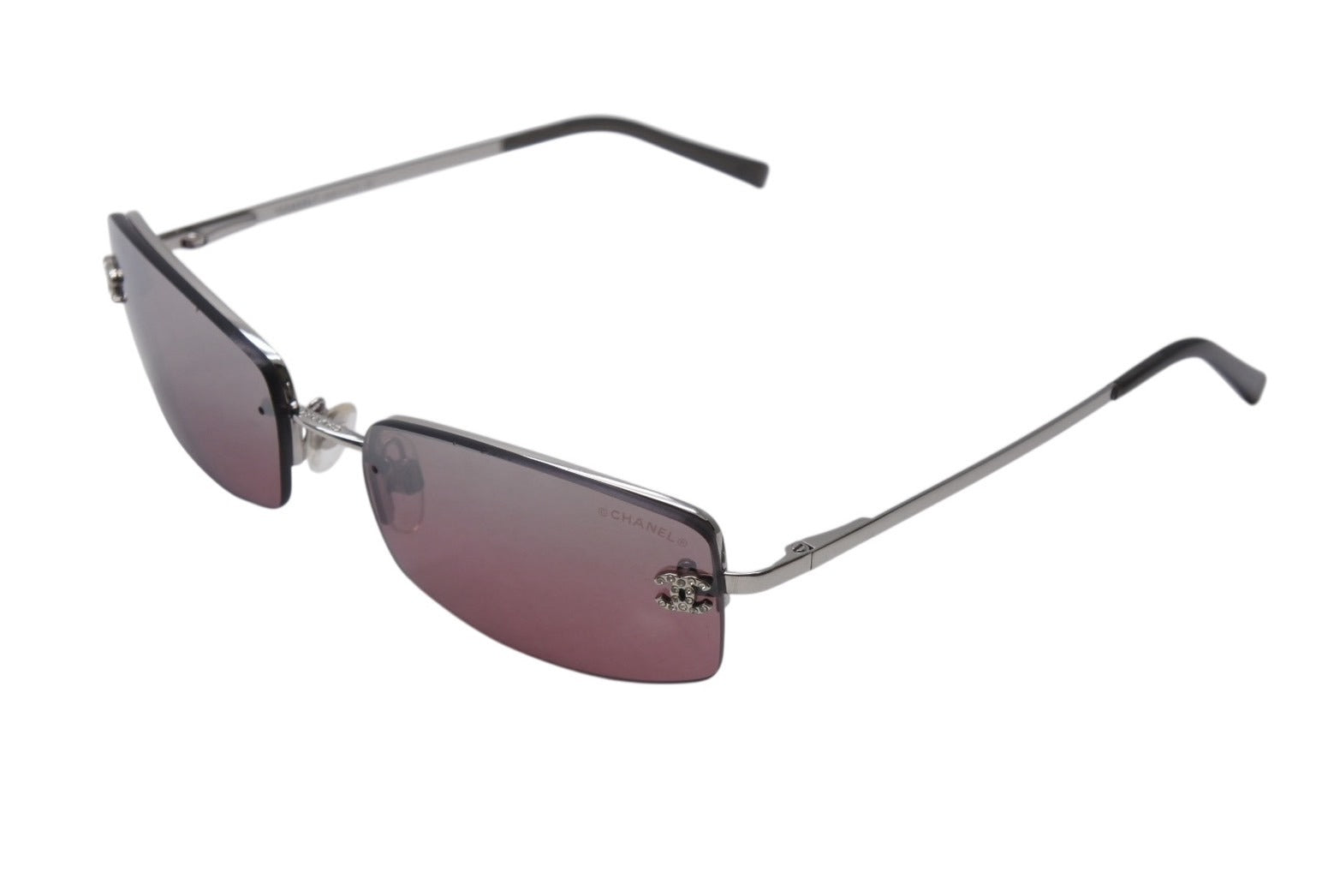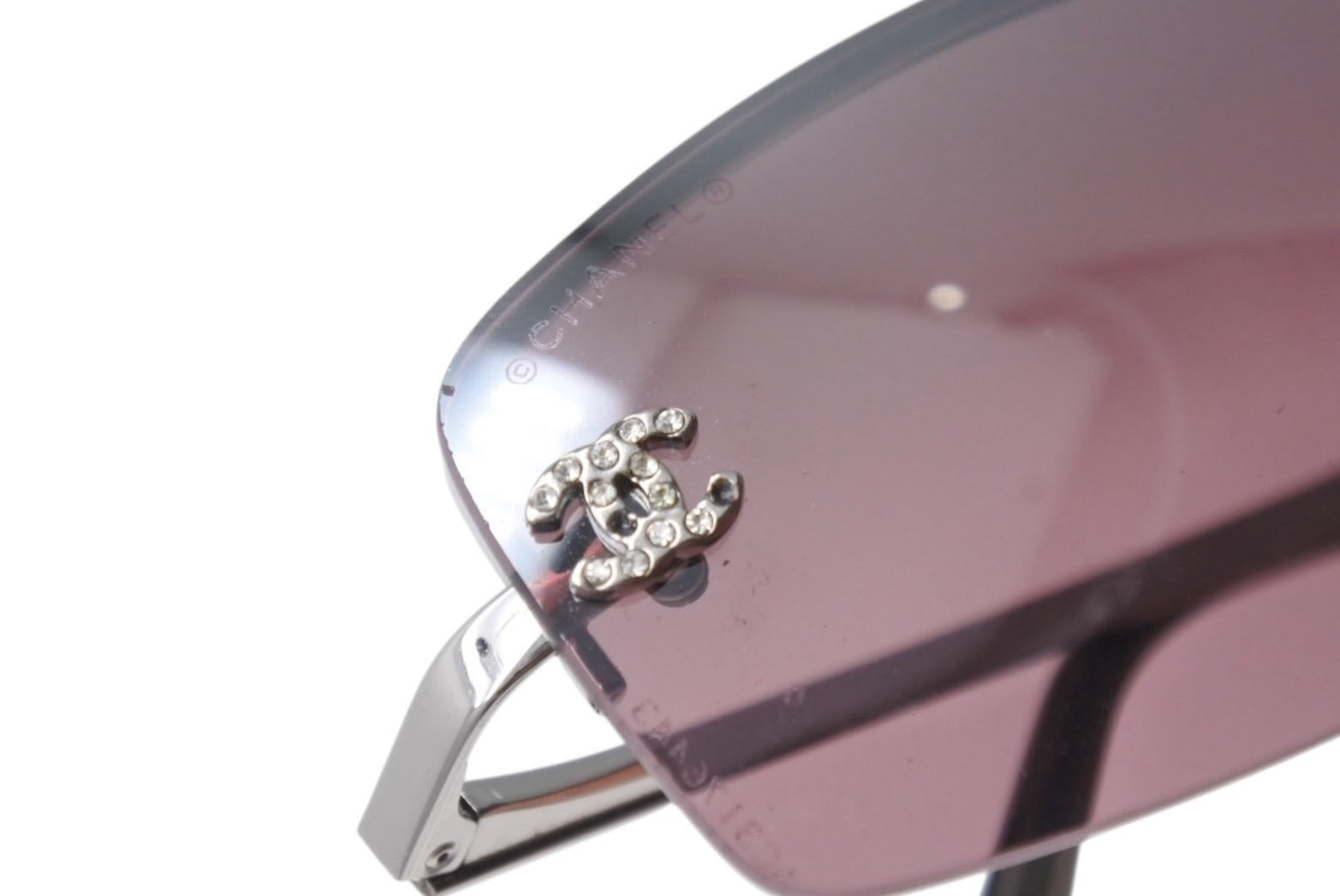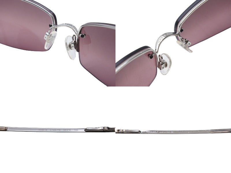CHANEL シャネル リムレス ラインストーン ココマーク サングラス パープル シルバー プラスチック メタル ロゴ 56☐16 4093 シルバー金具 美品 中古 4b003949