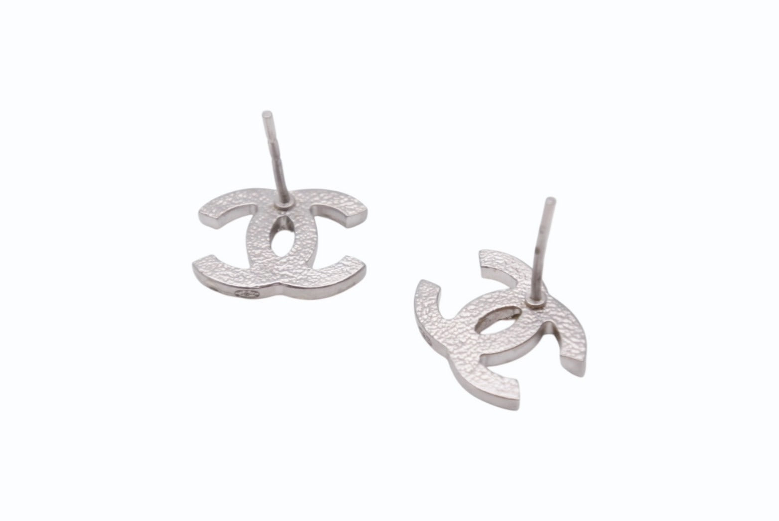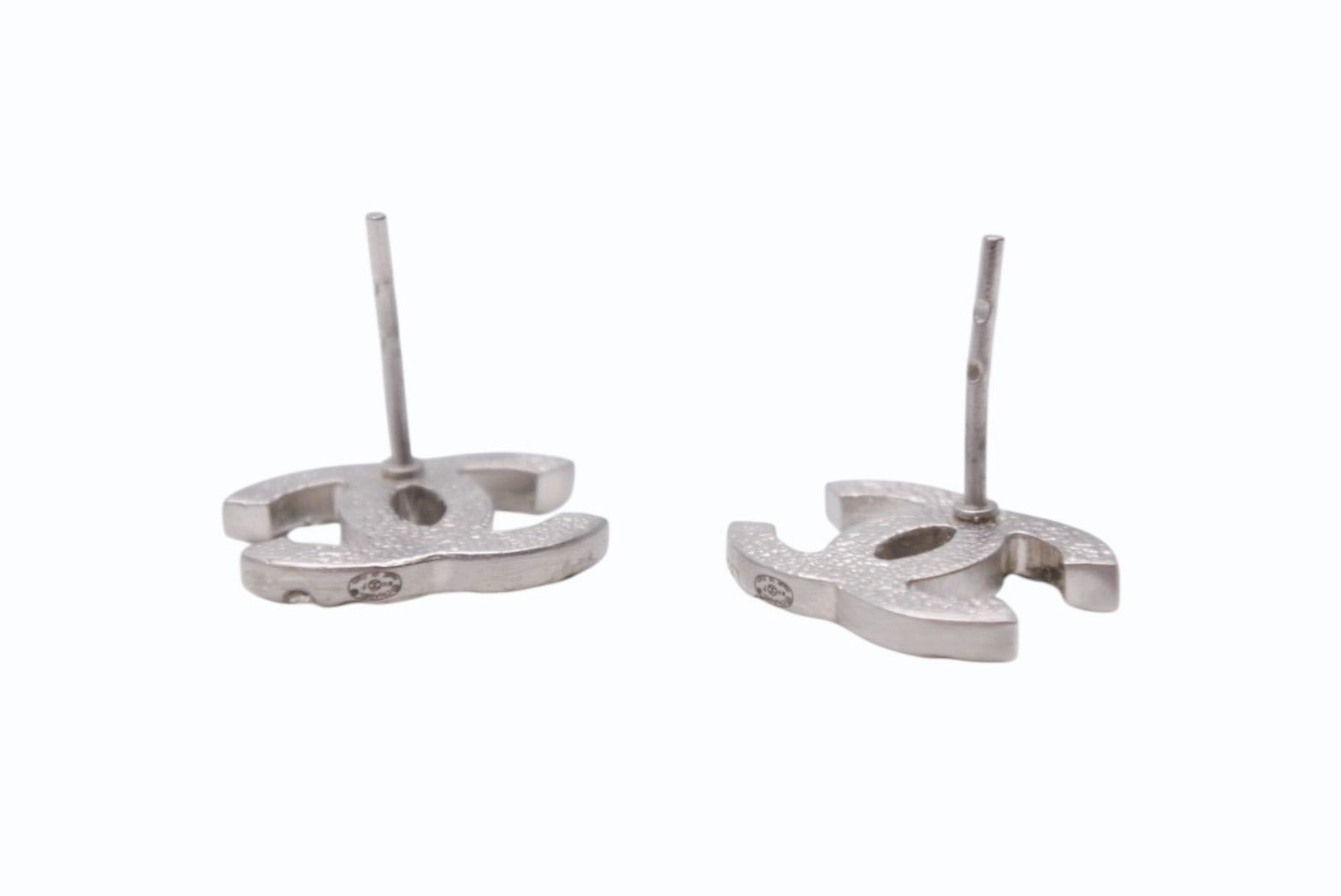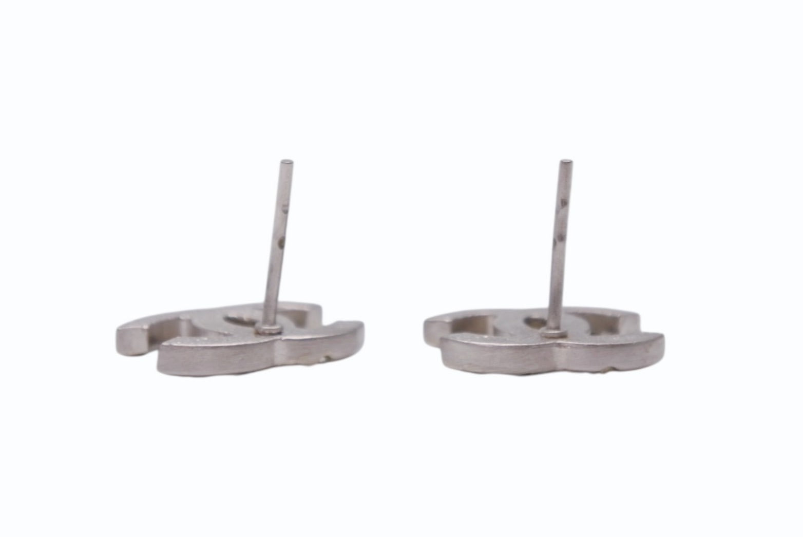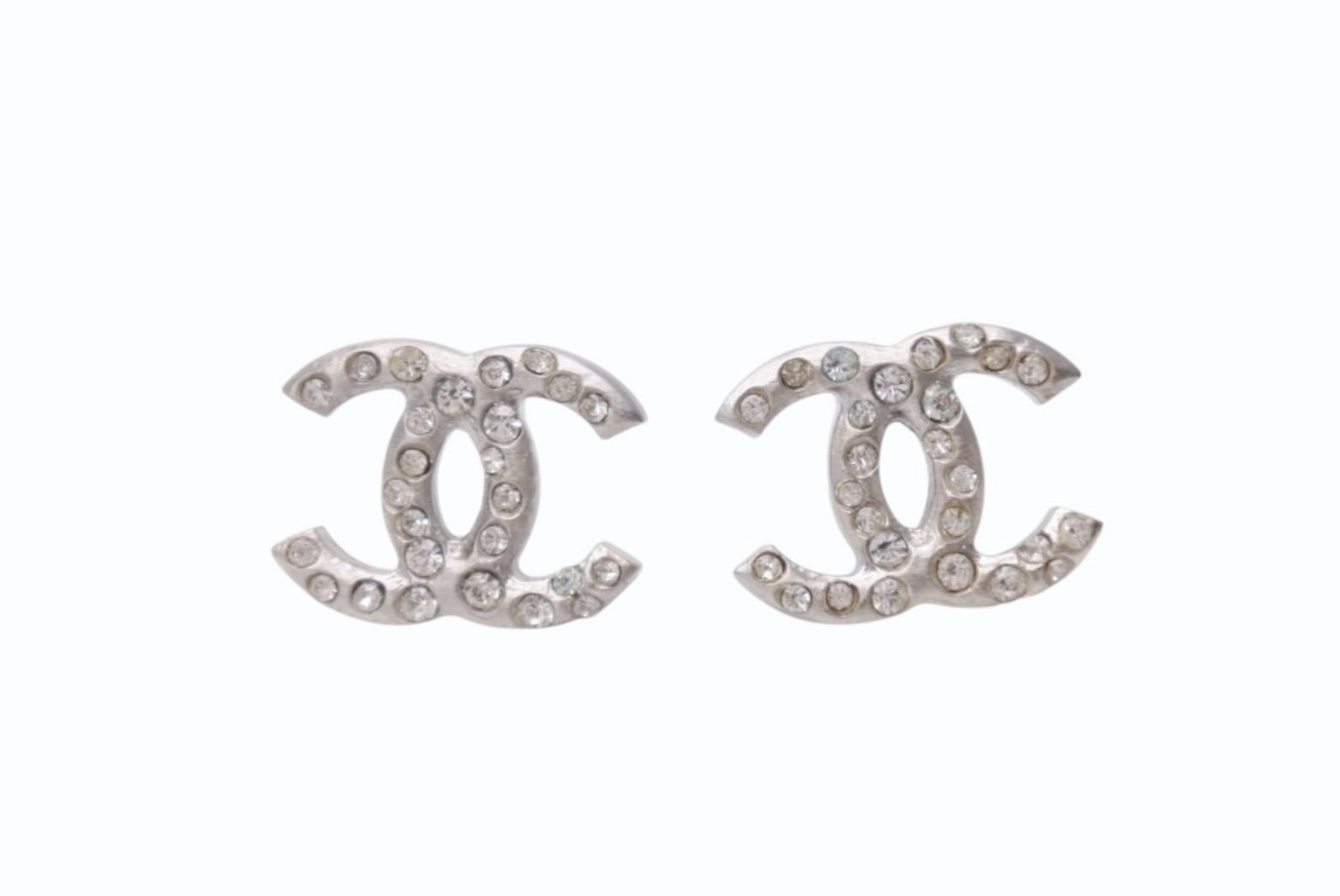 極美品 CHANEL シャネル ピアス ココマーク 両耳 アクセサリー B11P刻印 2.4g メタル ラインストーン シルバー 中古 4b003958