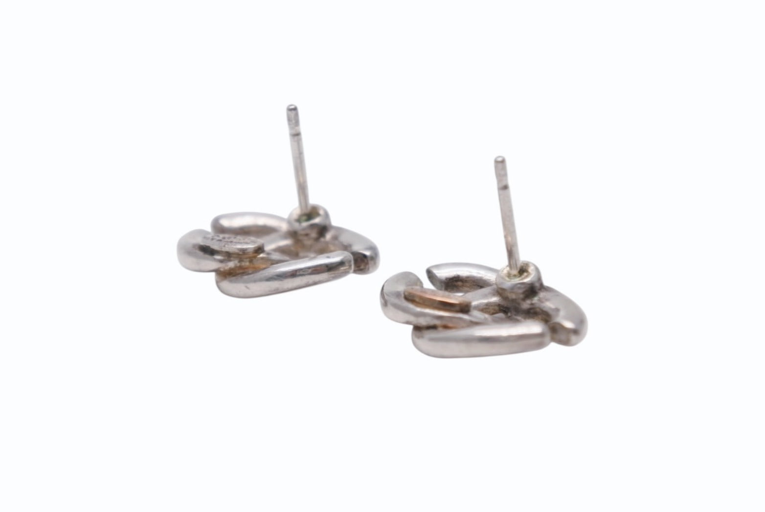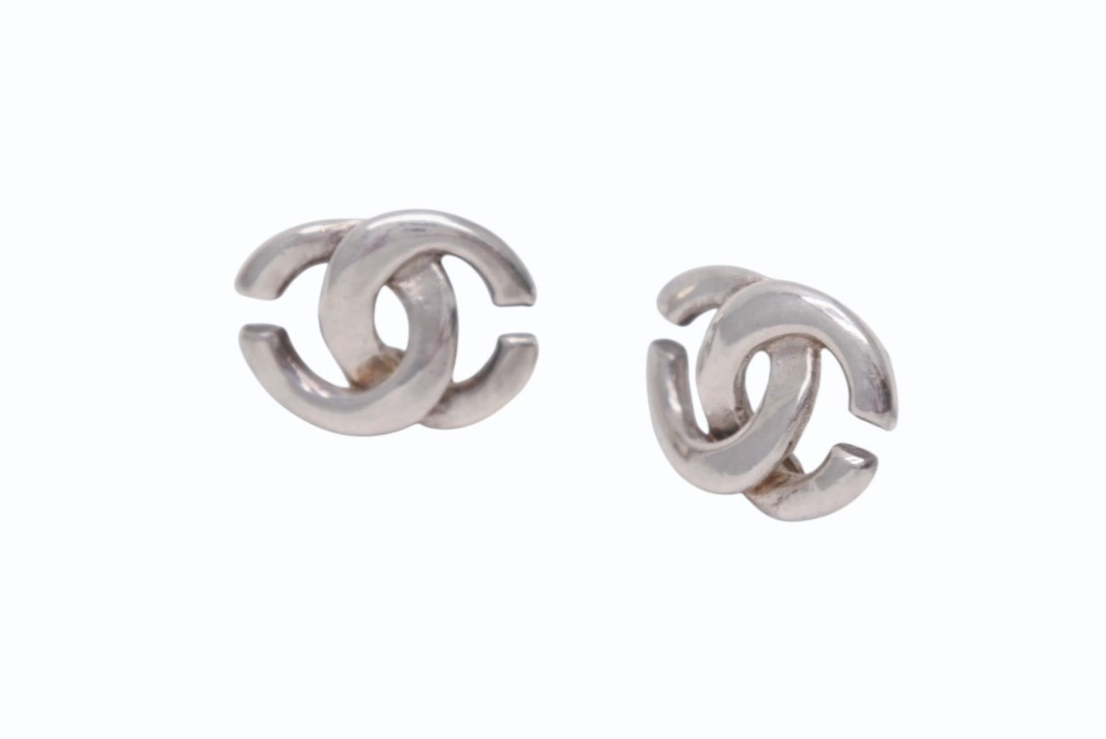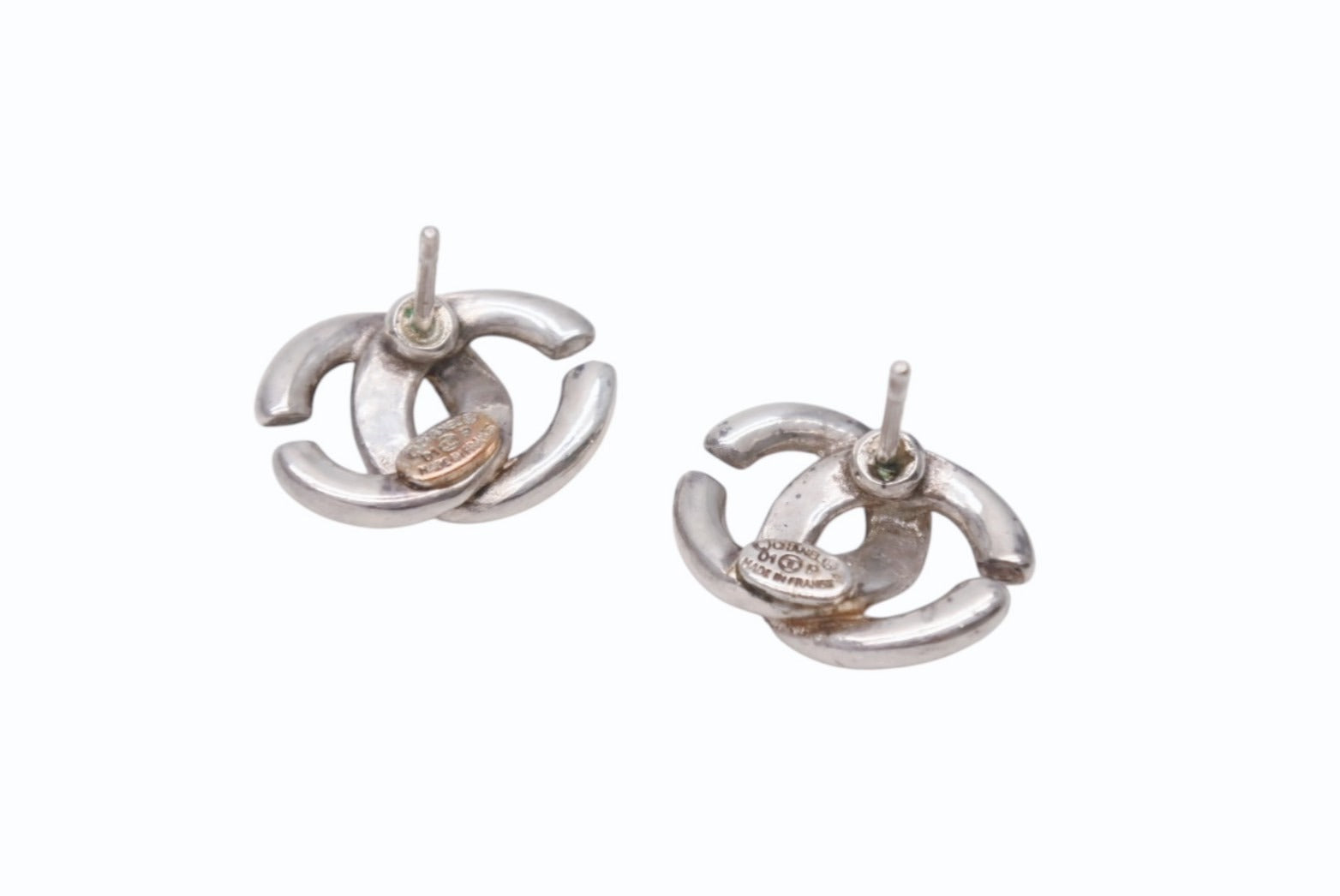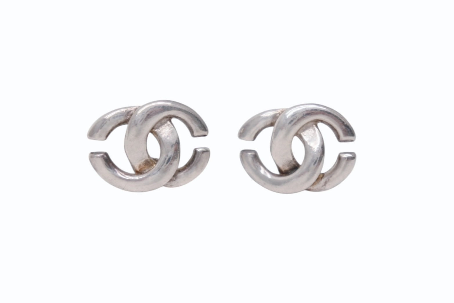 極美品 CHANEL シャネル ココマーク フープ ピアス スクエア柄 両耳 01P刻印 2.4g メタル シルバー 中古 4b003970