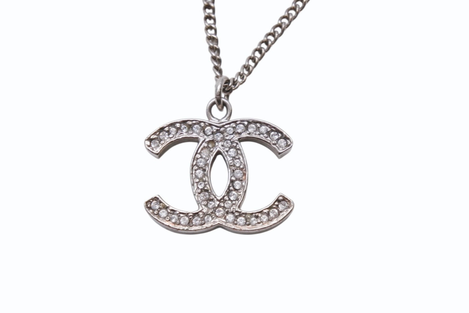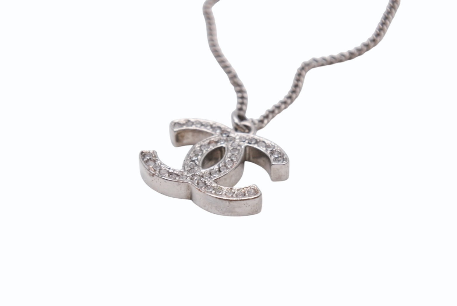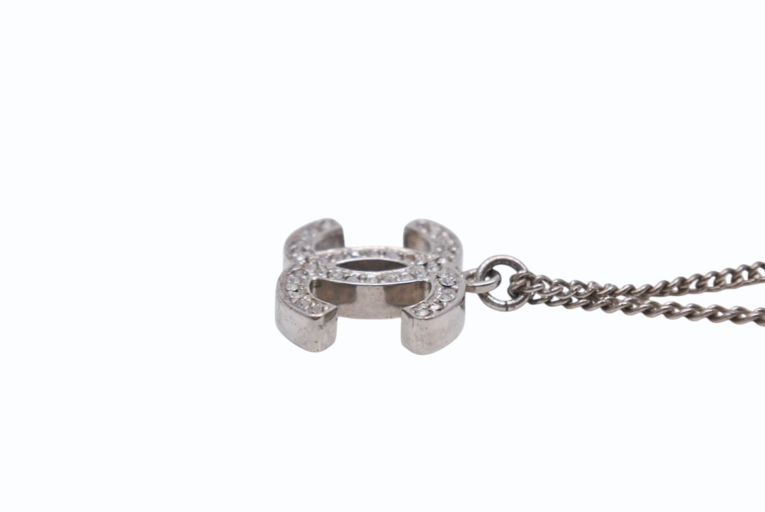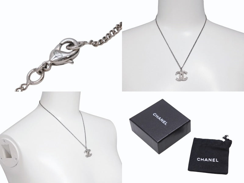 CHANEL シャネル ココマーク ネックレス 重量約7.5g 07A刻印 全長約42cm ラインストーン メタル シルバー クリア 美品 中古 4b003982