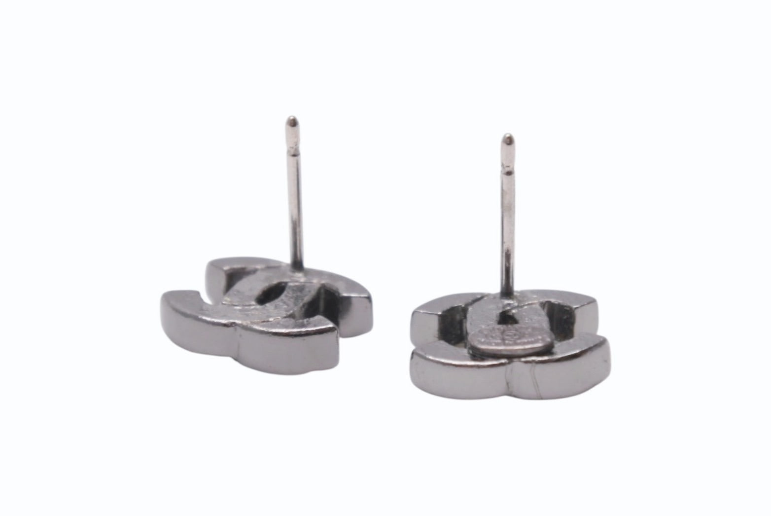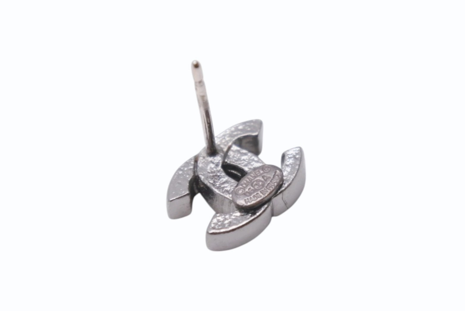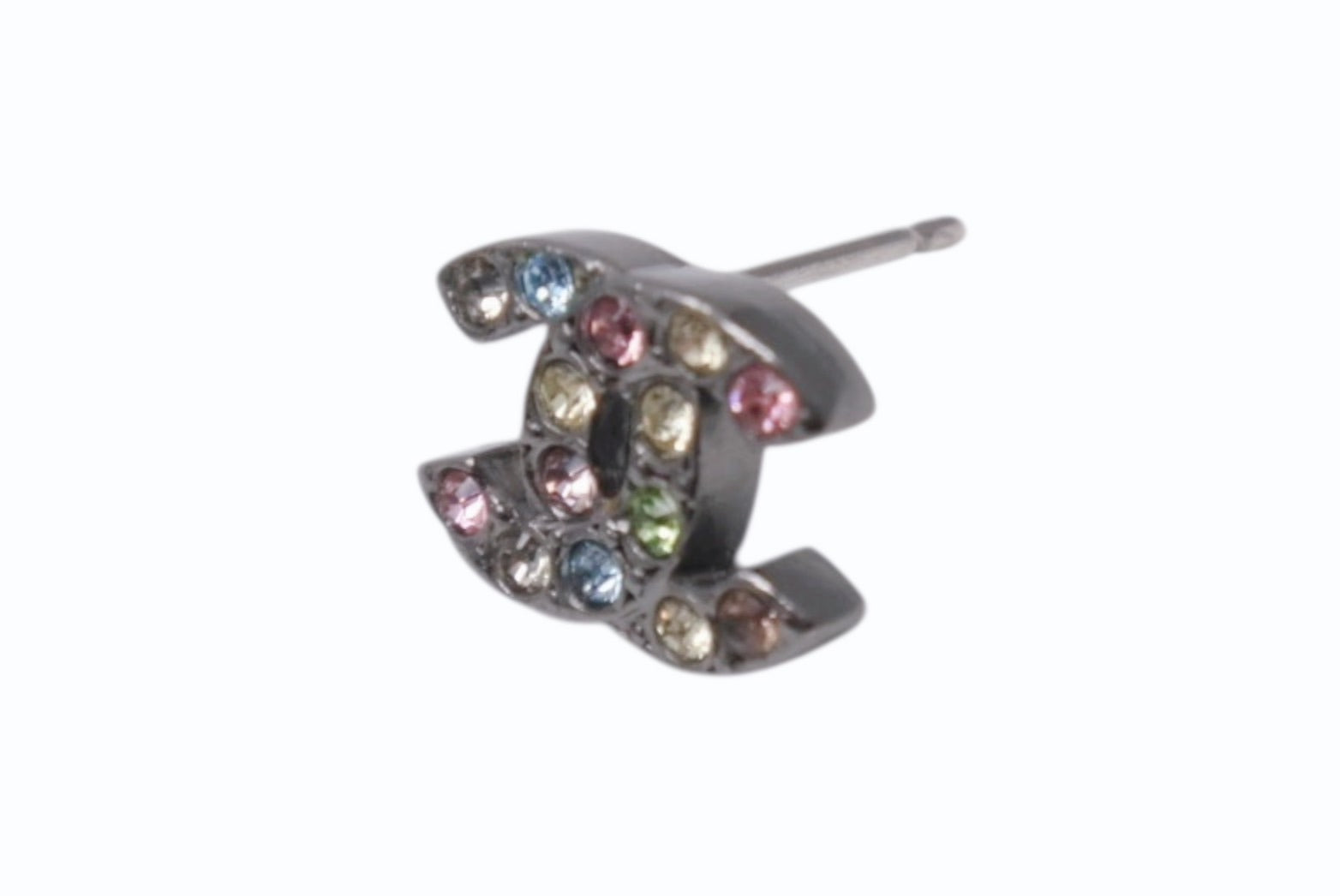 極美品 CHANEL シャネル ピアス ココマーク ラインストーン 両耳 06A刻印 2.4g メタルブラック マルチカラー 中古 4b003985