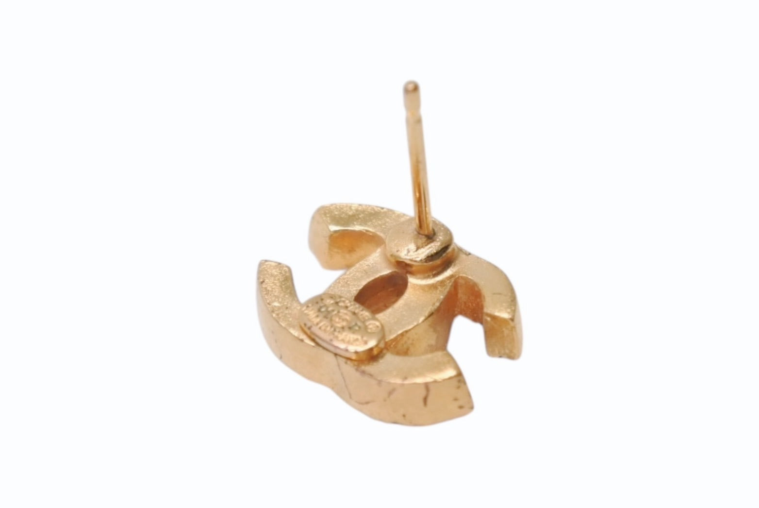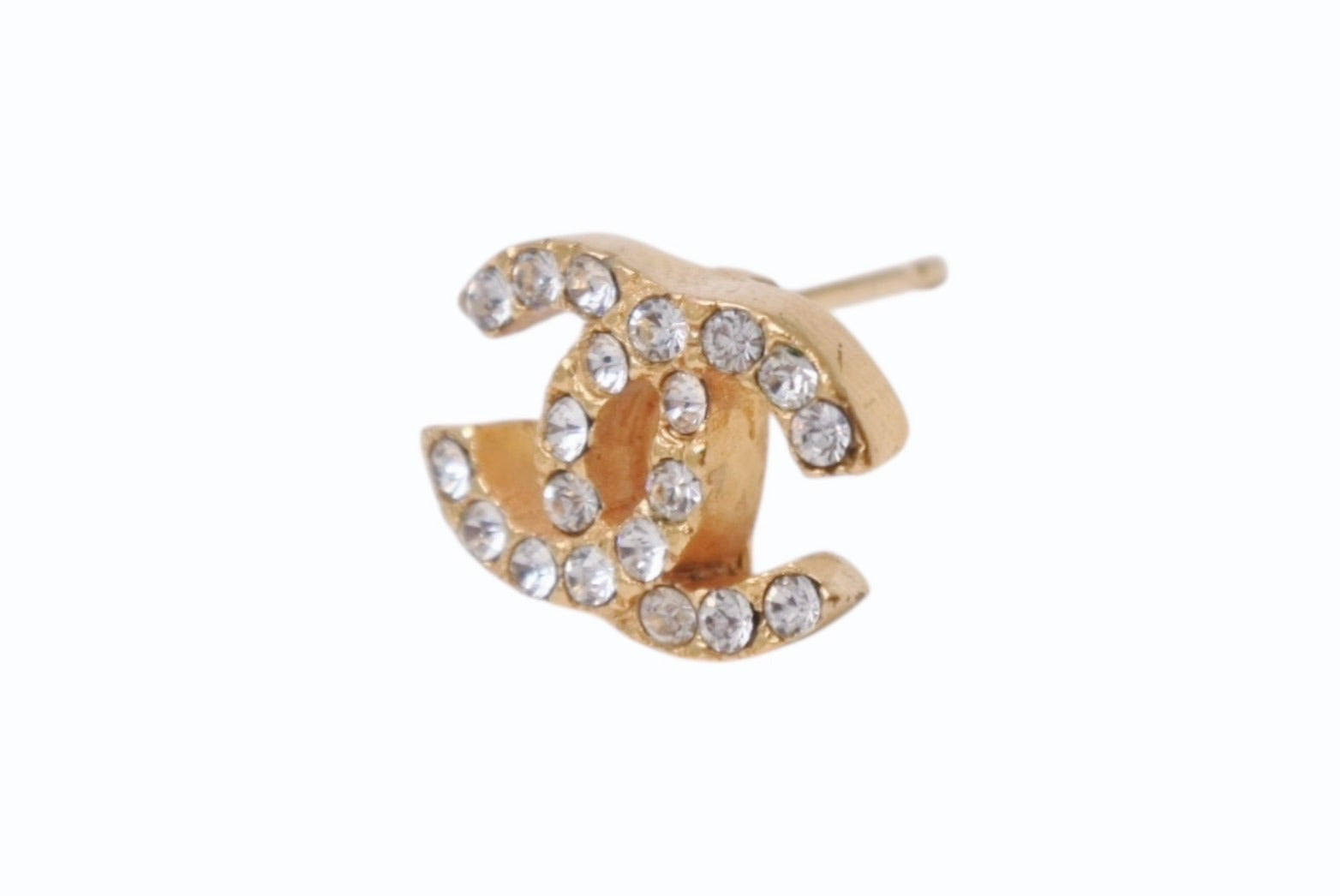 極美品 CHANEL シャネル ココマーク ラインストーン ピアス 片耳 アクセサリー 01P刻印 1.7g GP ゴールド 中古 4b003988