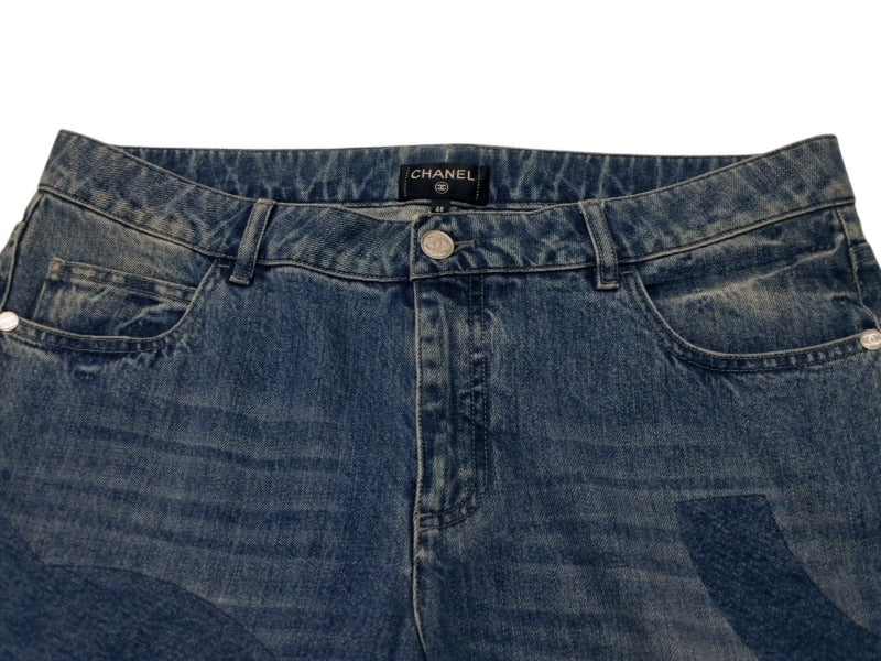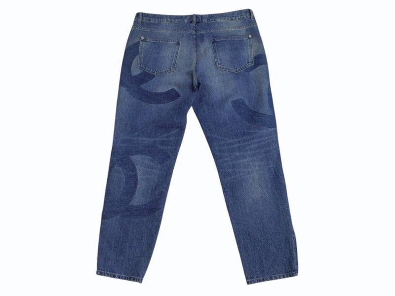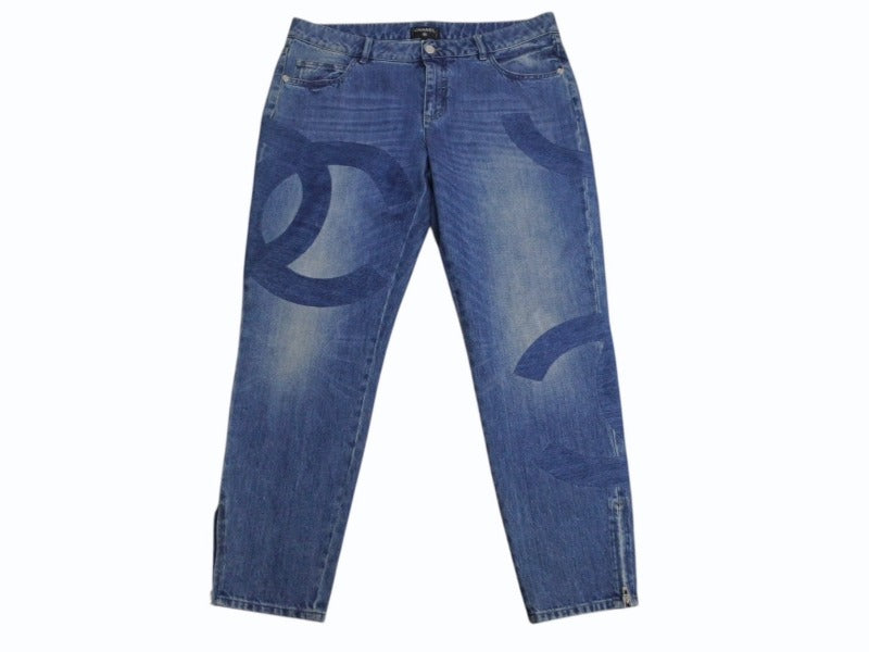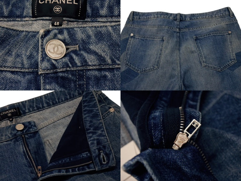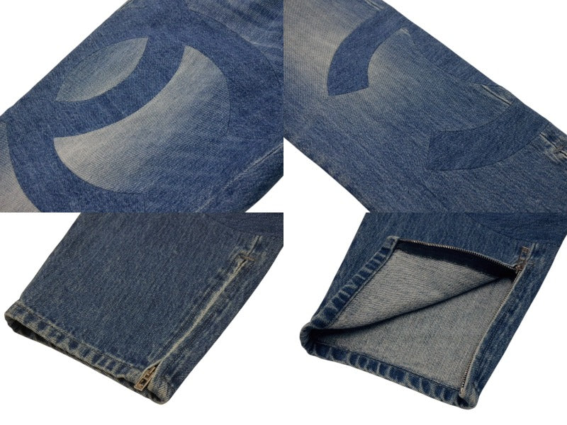 新品未使用 CHANEL シャネル ココマーク ジップ テーパード デニムパンツ ロゴ ブルー コットン ボトムス P55911V42309 サイズ48 中古 4b004036