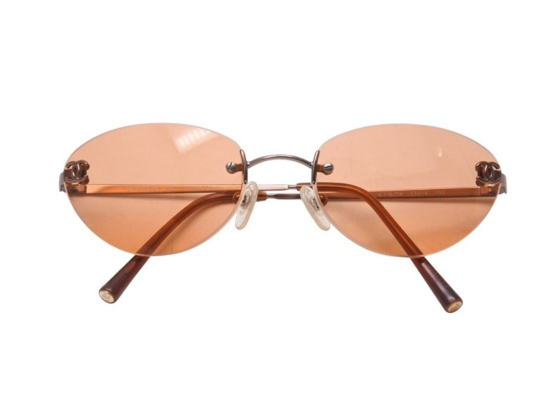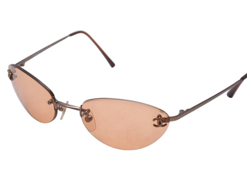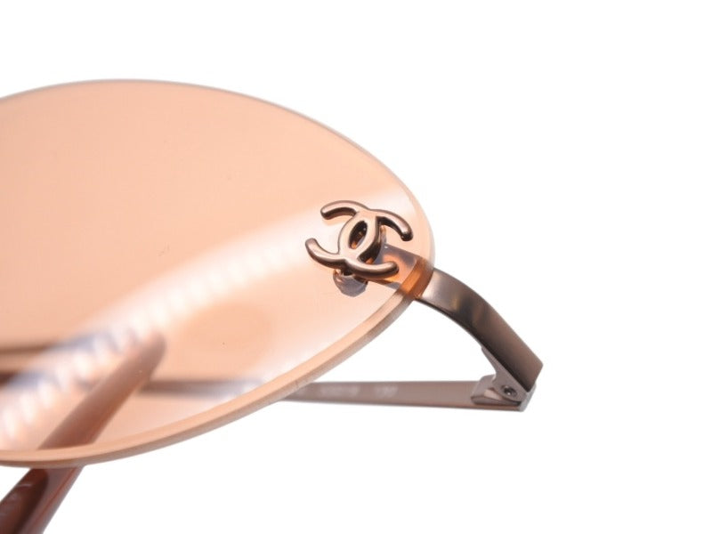 極美品 CHANEL シャネル リムレス サングラス ココマーク 2000s メタル ブラウン ピンクゴールド金具 サイズ53□19 中古 4b004113