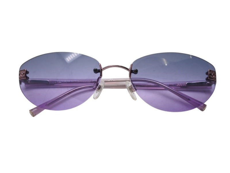 極美品 CHANEL シャネル リムレス サングラス ココマーク グラデーション 4069 イタリア製 メタル パープル サイズ58□18 中古 4b004114