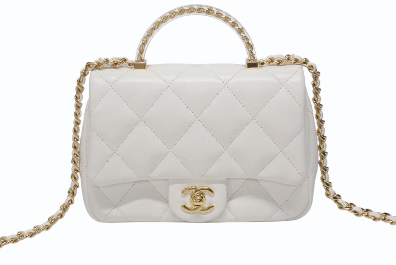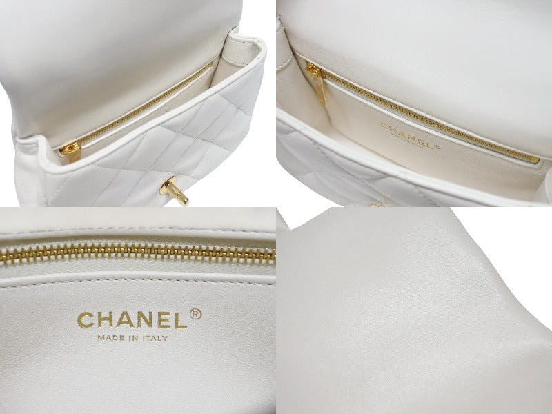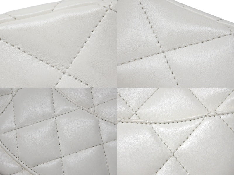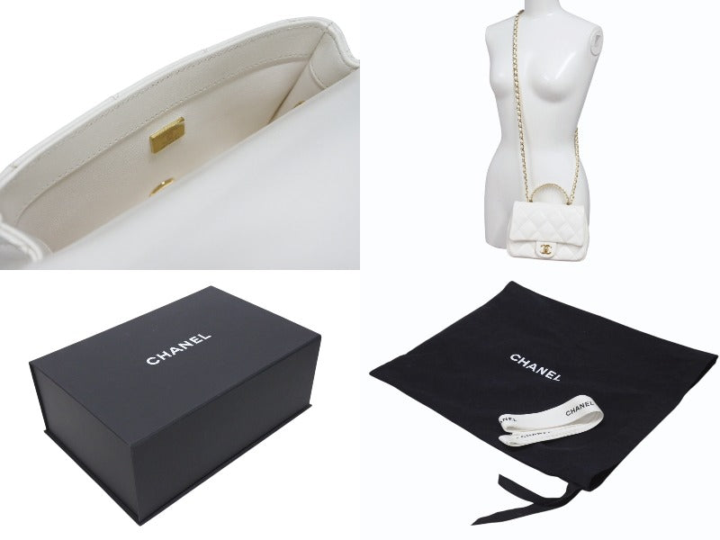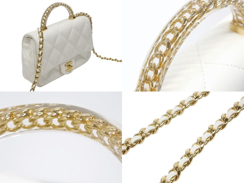 CHANEL シャネル トップハンドル ミニフラップ チェーンショルダーバッグ シャイニーカーフスキン ホワイト ゴールド金具 美品 中古 4b004238