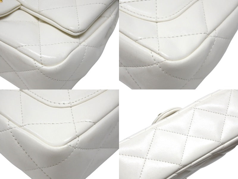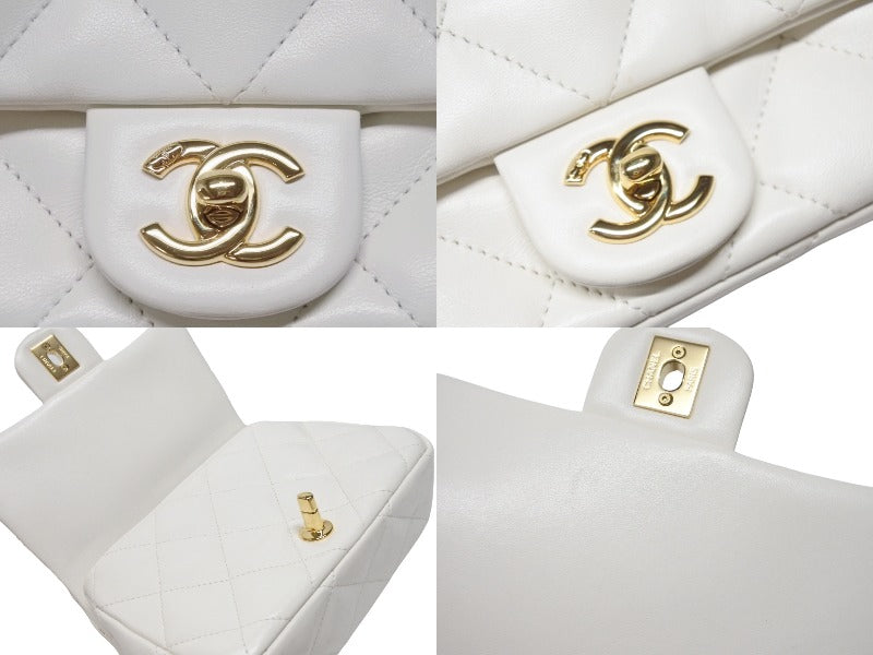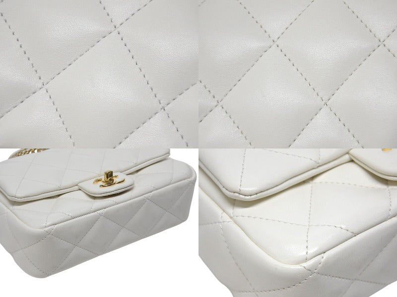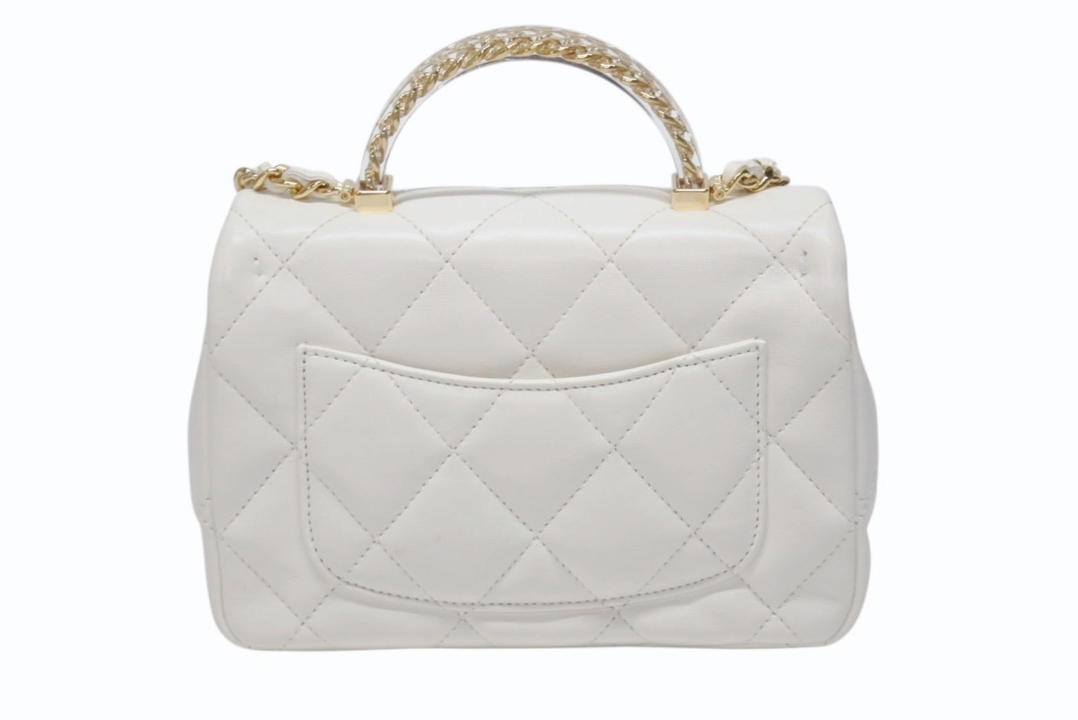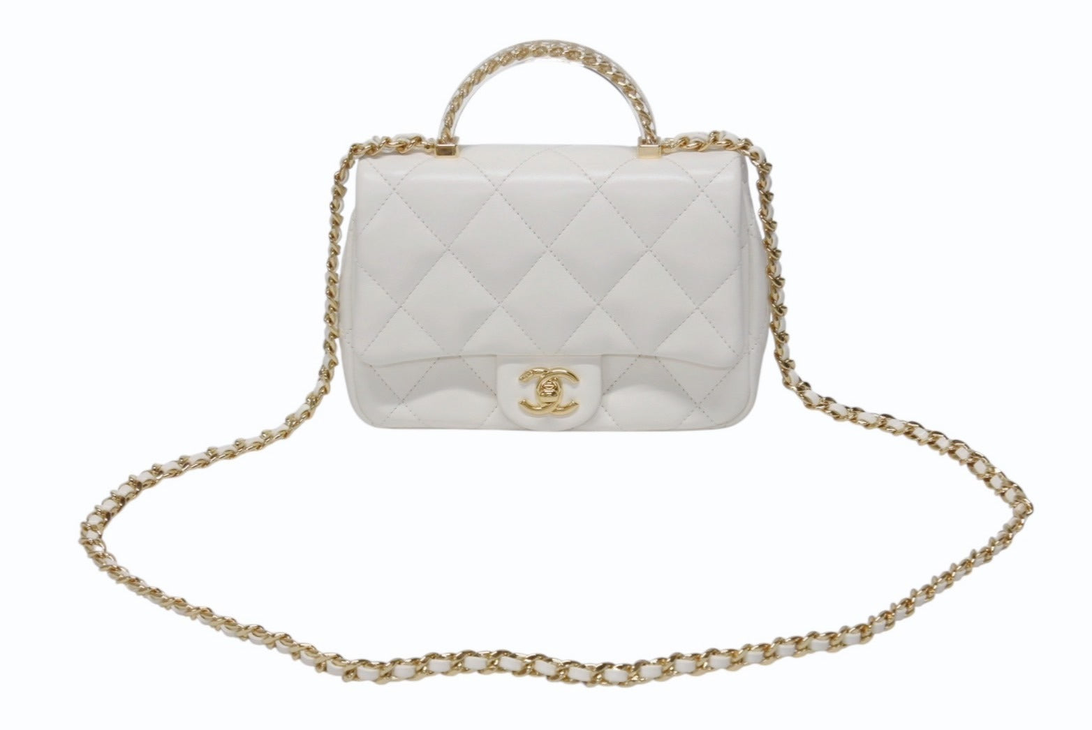 CHANEL シャネル トップハンドル ミニフラップ チェーンショルダーバッグ シャイニーカーフスキン ホワイト ゴールド金具 美品 中古 4b004238