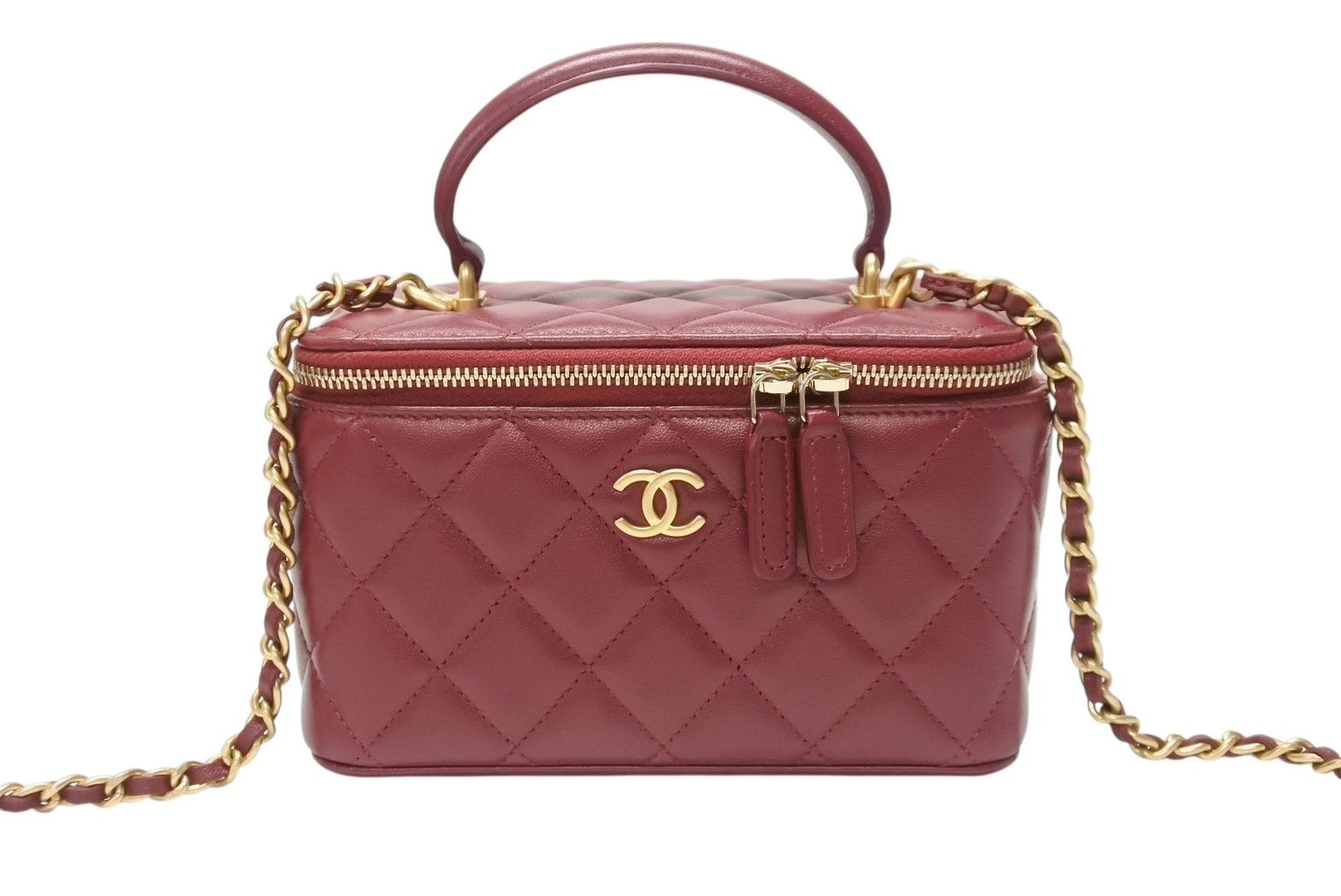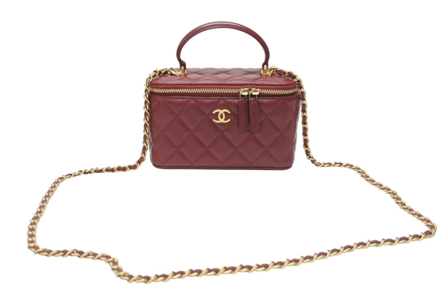 極美品 CHANEL シャネル ヴァニティ チェーンショルダーバッグ AP2199 31番台 ココマーク ラムスキン ボルドー ゴールド金具 中古 4b004291