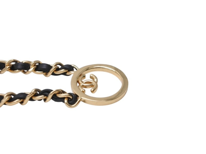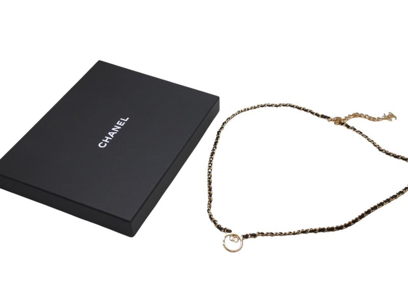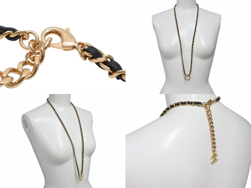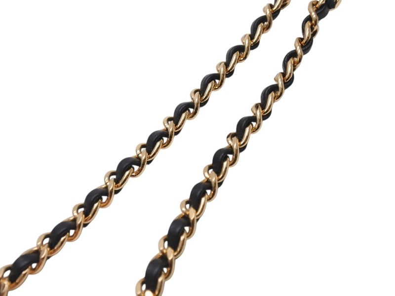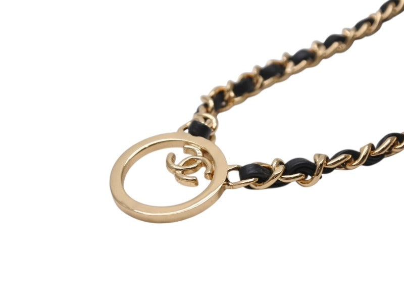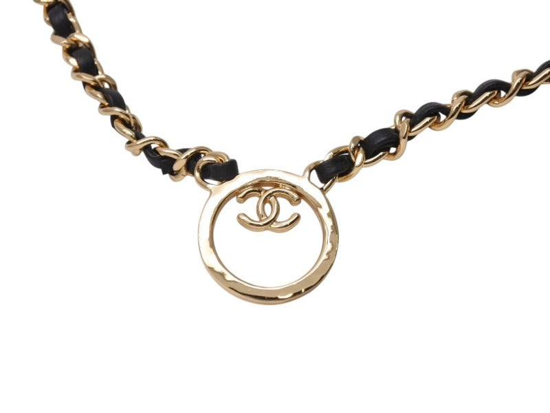 新品未使用 CHANEL シャネル チェーンネックレス ABC578 重量約65.3g B24C刻印 ココマーク レザー メタル ゴールド ブラック 中古 4b004482