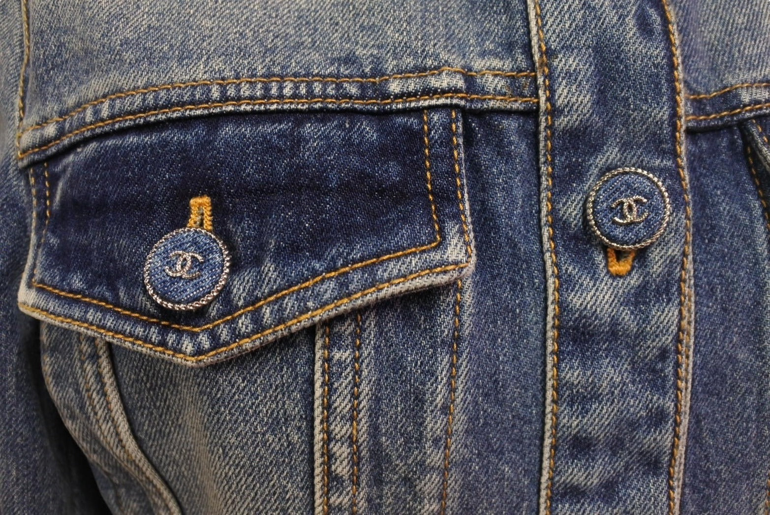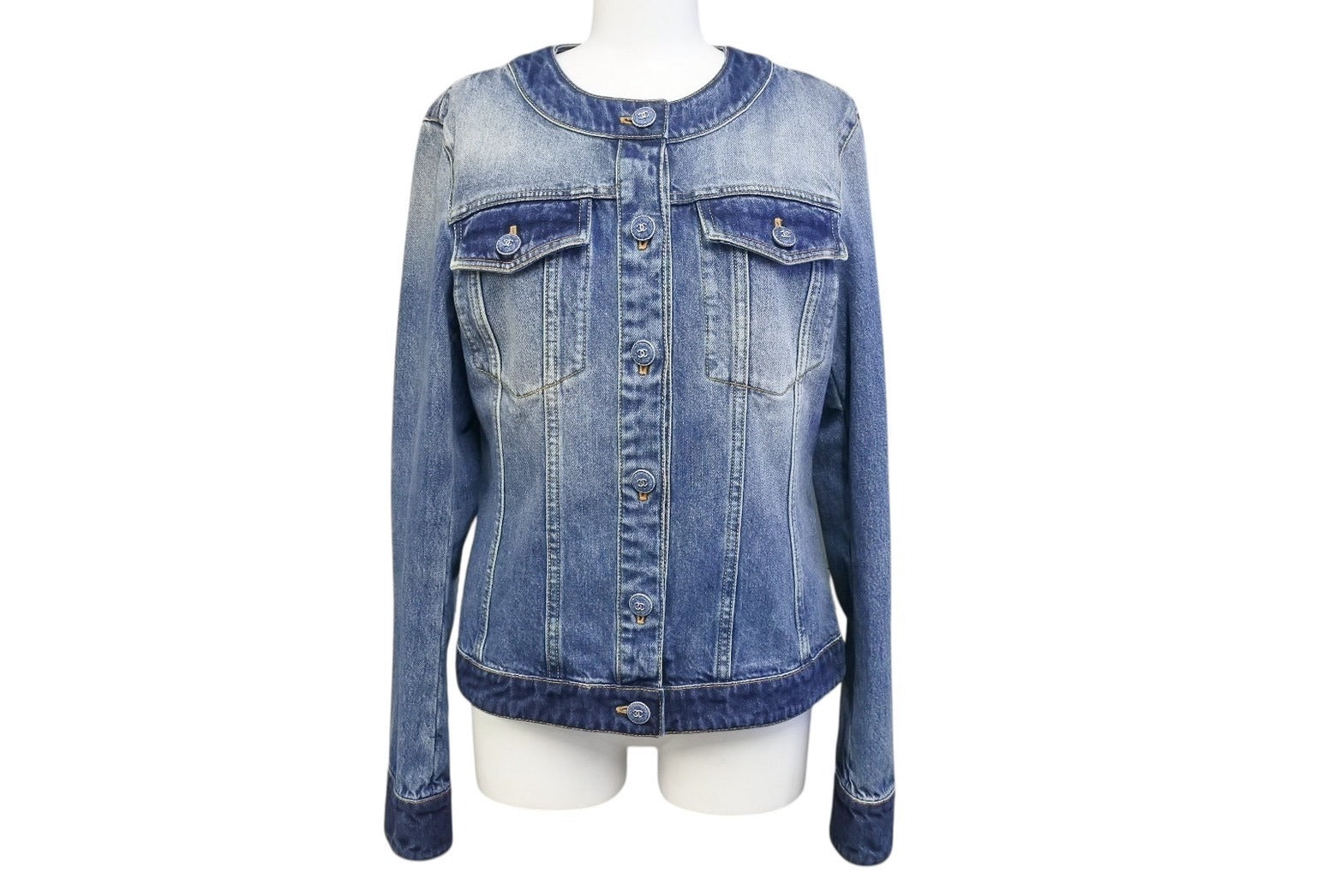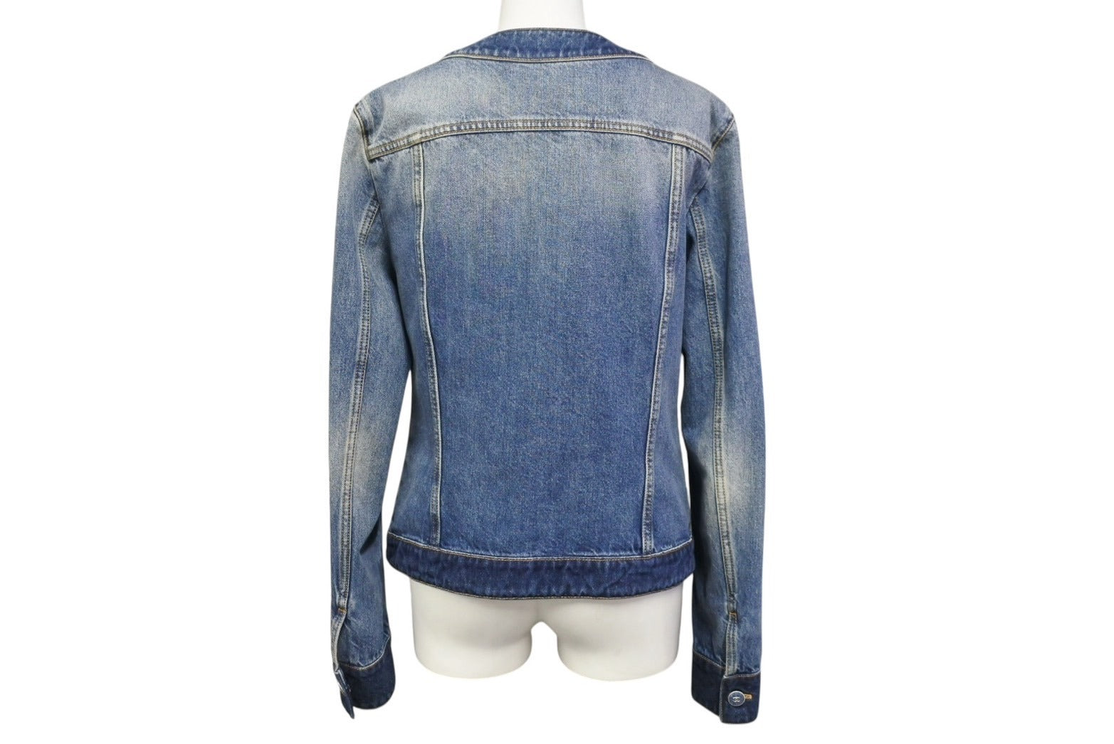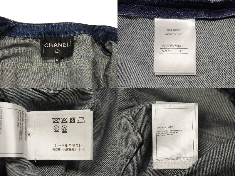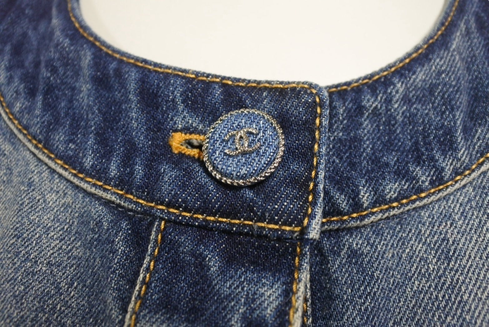 極美品 CHANEL シャネル ノーカラーデニムジャケット P78108V70196 サイズ36 インディゴブルー ココマークボタン 中古 4b004485