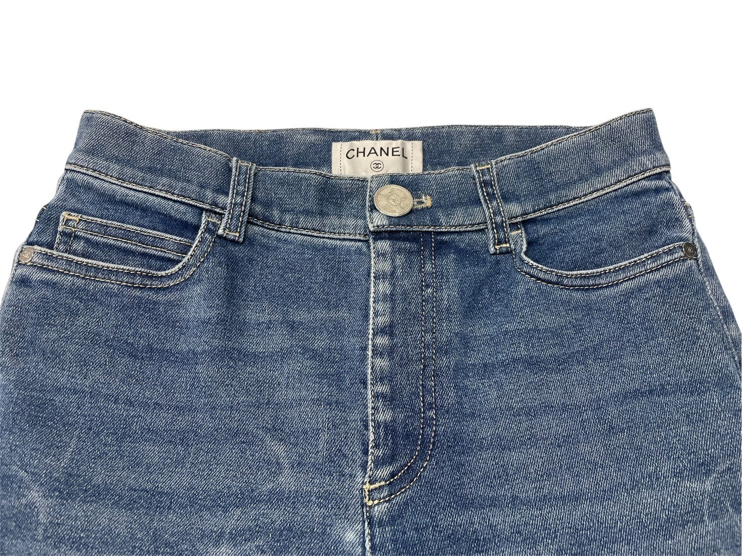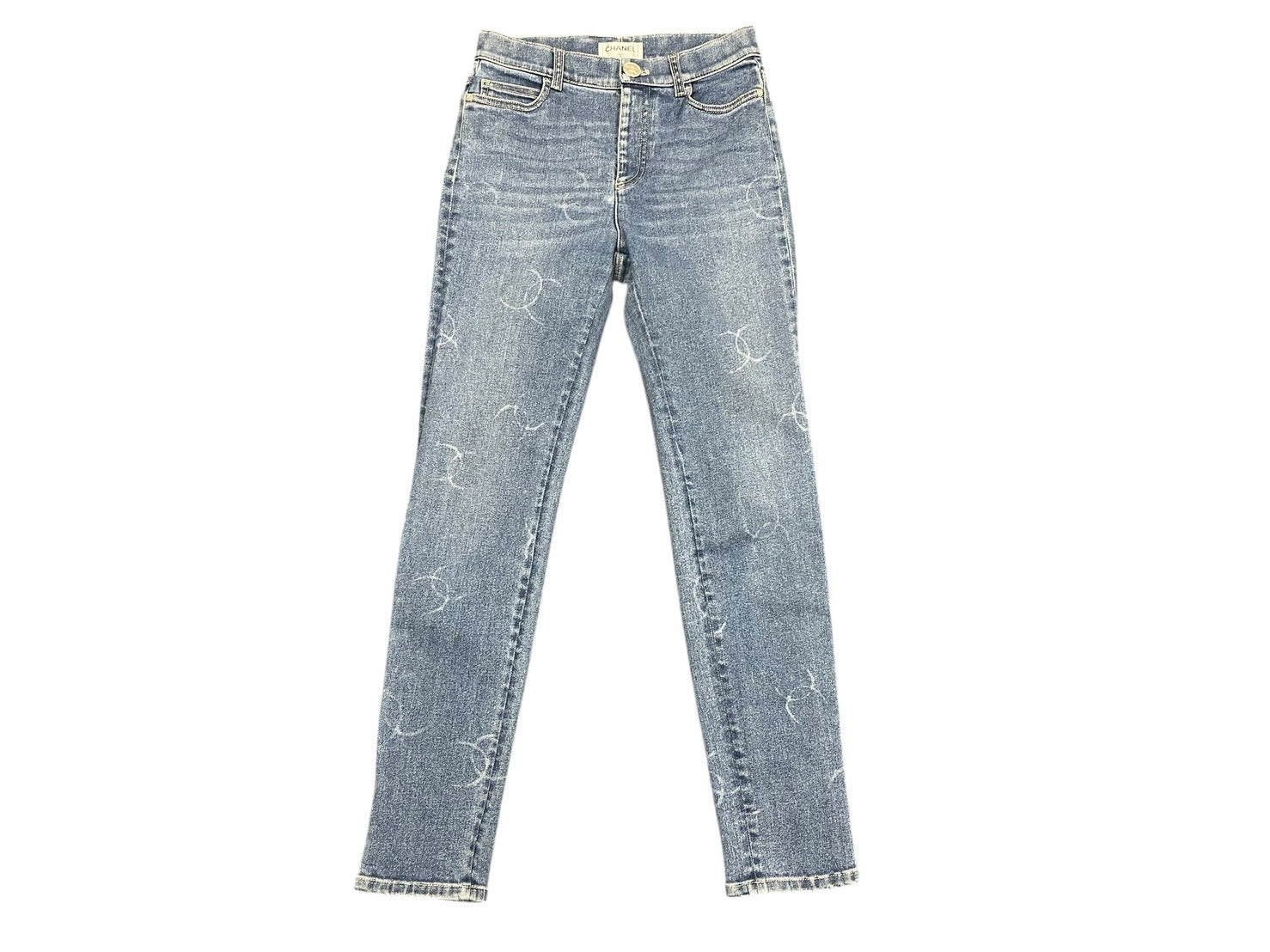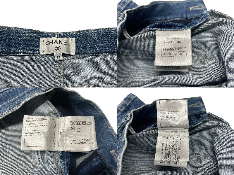 CHANEL シャネル デニムパンツ ジーンズ P64935V61007 サイズ38 テーパード ココマーク柄 インディゴブルー 美品 中古 4b004487