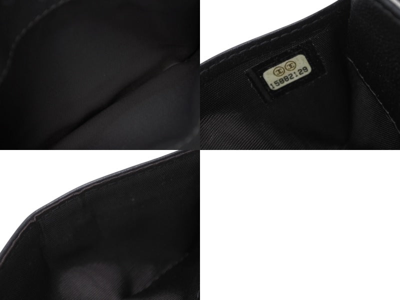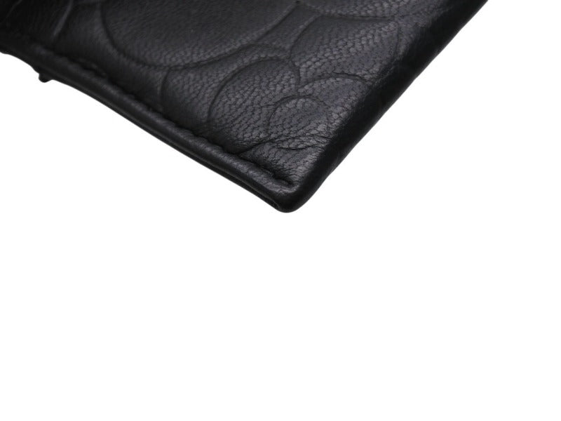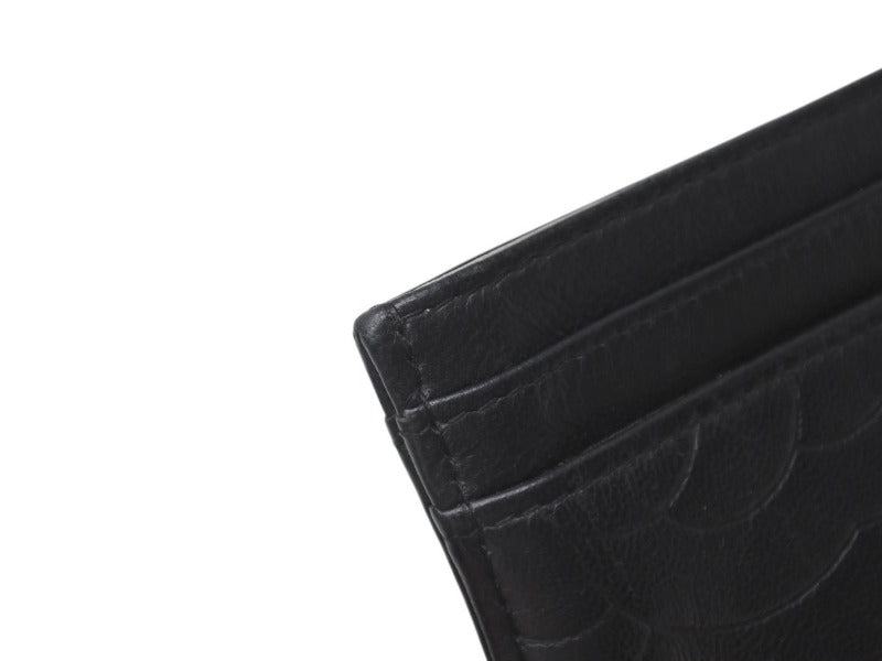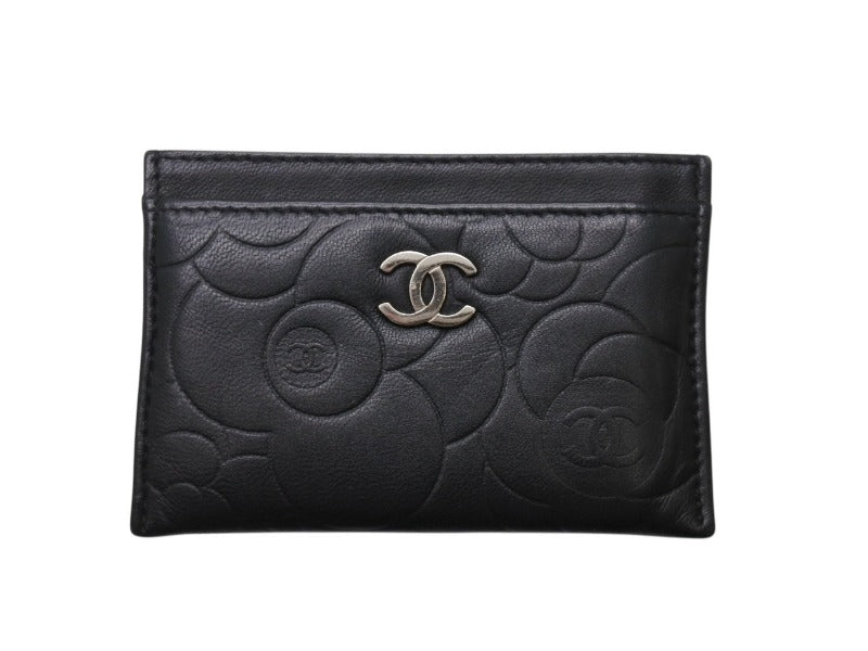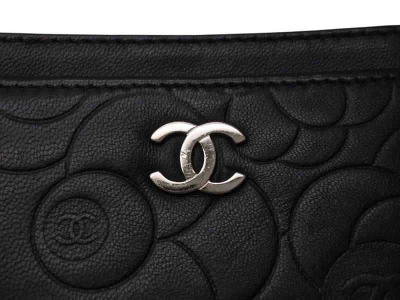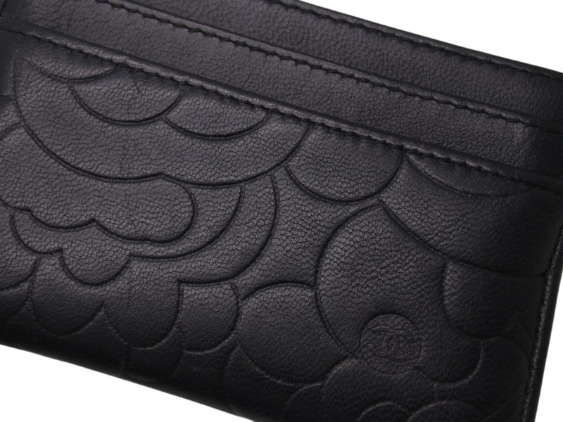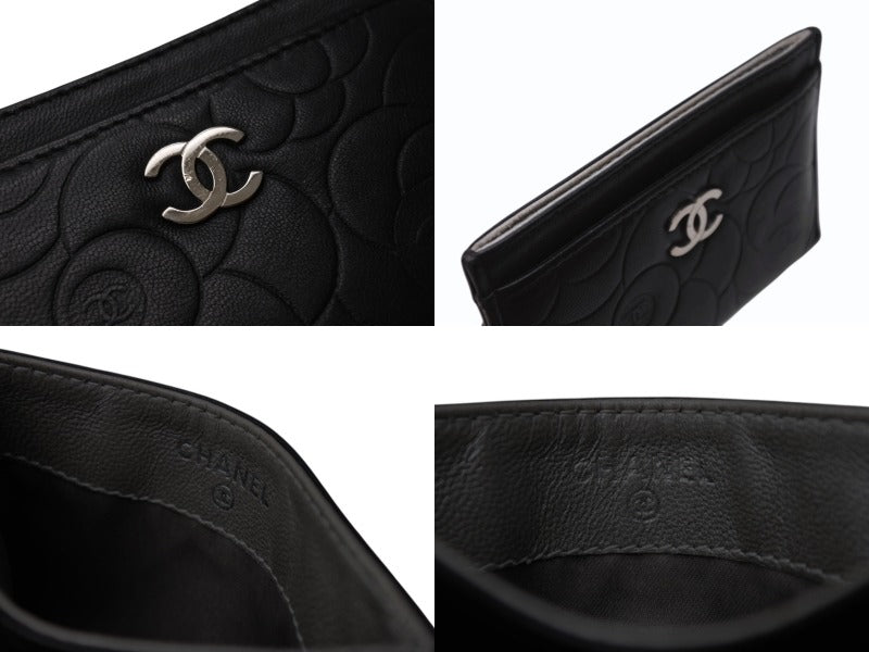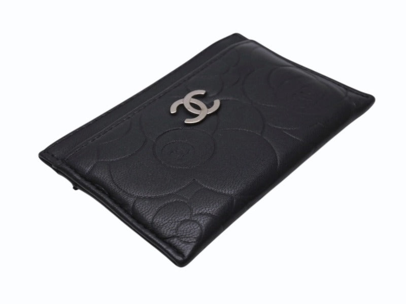 CHANEL シャネル カメリア カードケース 名刺入れ パスケース ココマーク 15番台 ラムスキン ブラック シルバー金具 美品 中古 4b004559