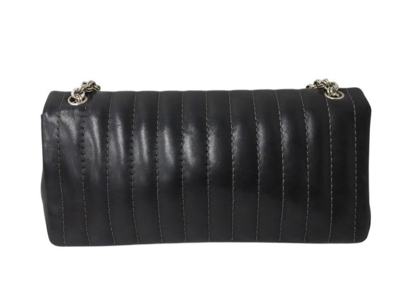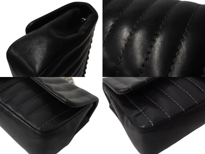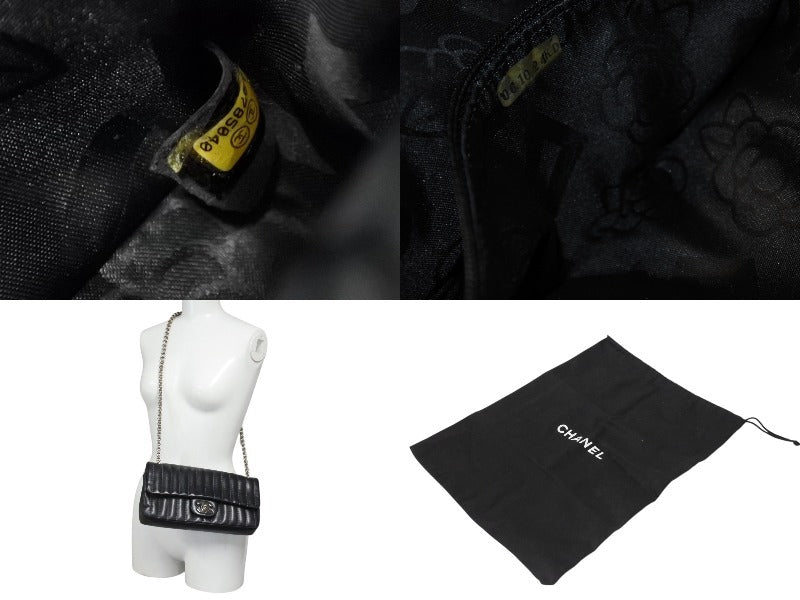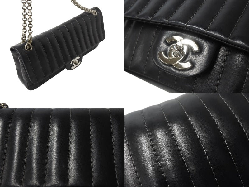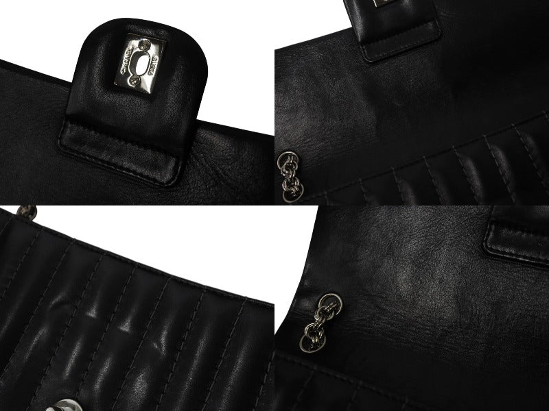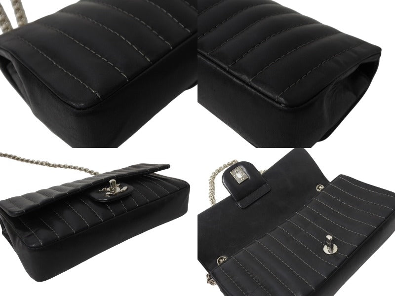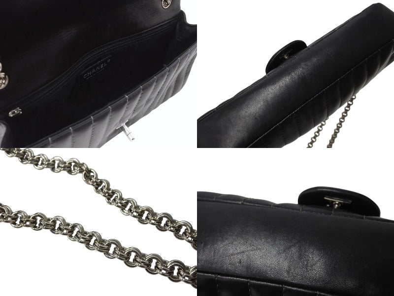 CHANEL シャネル マドモアゼル ダブルフラップ チェーンショルダーバッグ 10番台 ラムスキン ブラック シルバー金具 美品 中古 4b004827
