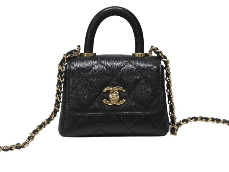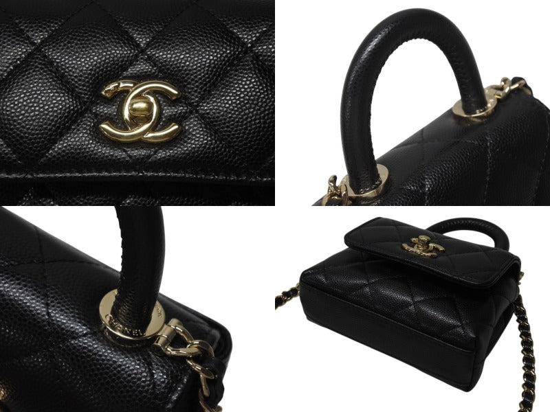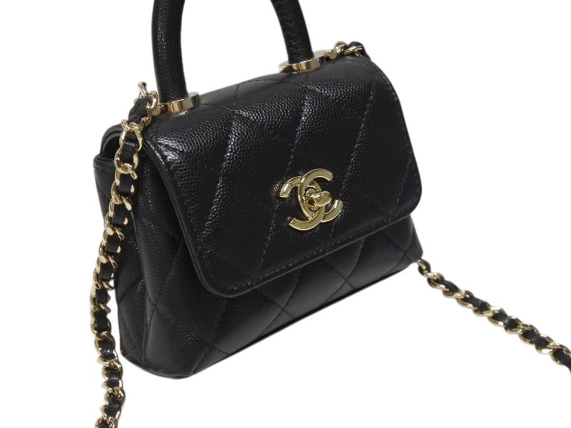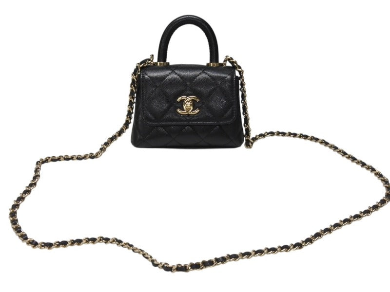 新品未使用 CHANEL シャネル マイクロミニ マトラッセ ハンドバッグ ショルダーバッグ ランダム番台 キャビアスキン ブラック 中古 4b004969